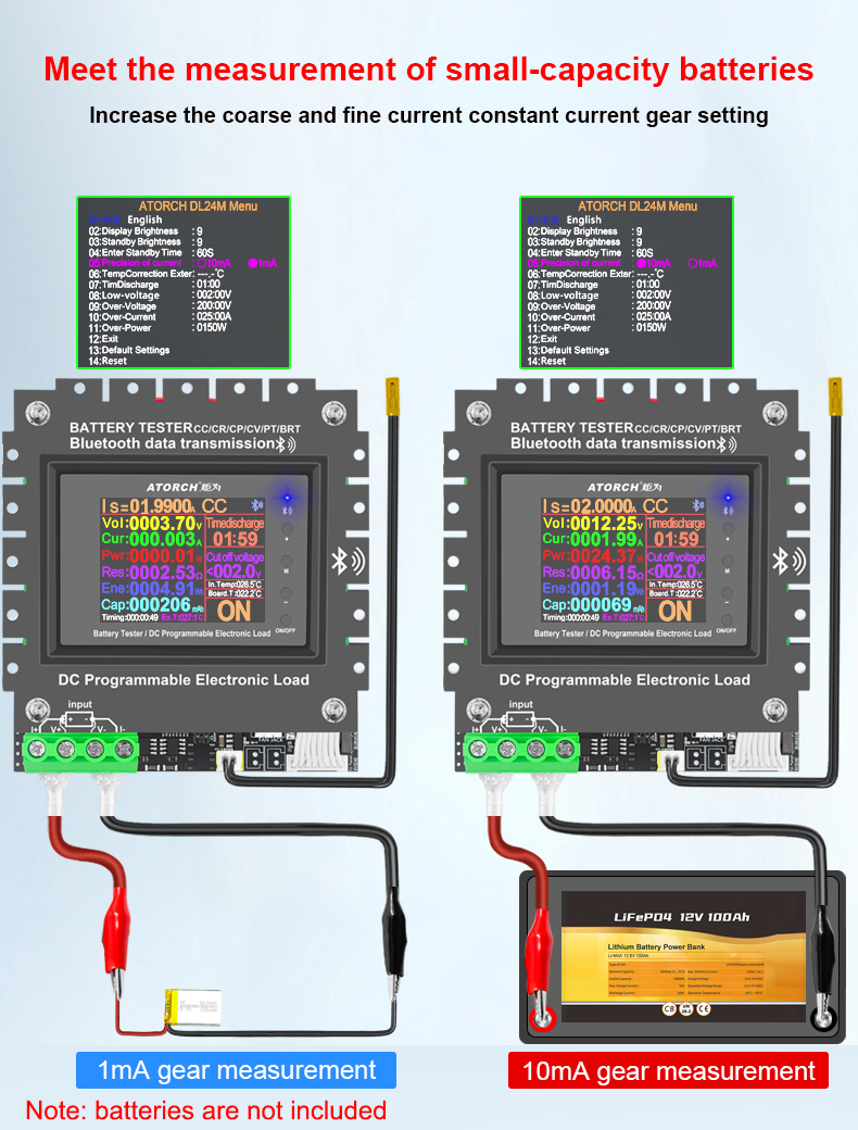- To test small-capacity batteries; coarse and fine constant current settings. In order to meet the needs of testing ultra-small capacity when setting a small current constant current mode, the engineer has added a selection of 10mA gear and 1mA gear in the background to meet the precise test of constant current discharge at different precision resolutions for batteries of different capacities