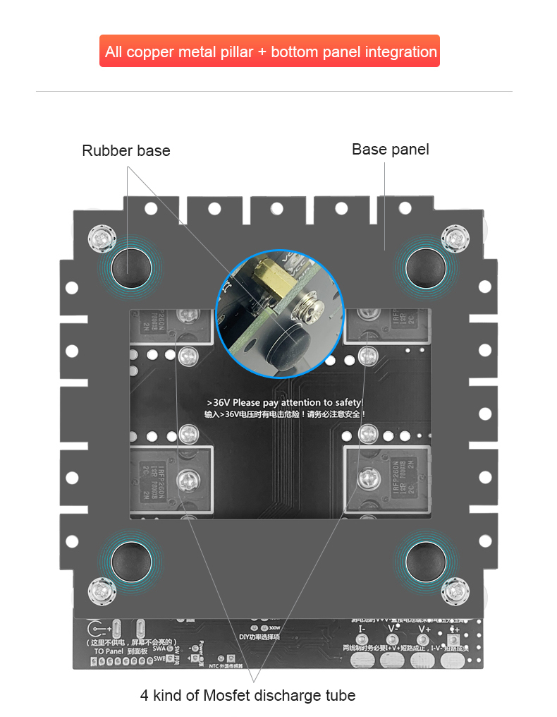 - All-copper metal column + bottom panel integration: This time, the integrated installation method of protecting the key panel and the bottom panel is adopted, which strengthens the protection of the circuit and improves the convenience of application. Good heat dissipation performance during discharge and easy placement
