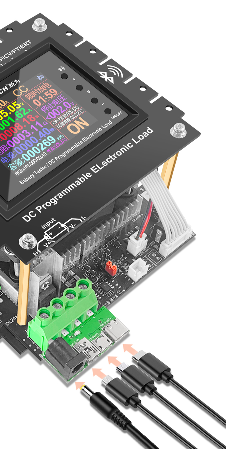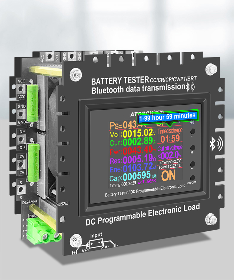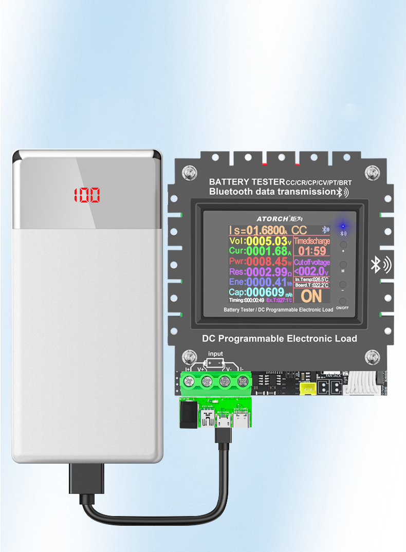 - High-power load is used for discharge and aging tests. Applicable to all USB chargers, power banks, and batteries. To test parameters and operations such as voltage, current, power, capacity, discharge, resistance, time-limited discharge settings, and stop voltage settings for various power adapters and other power supply equipment