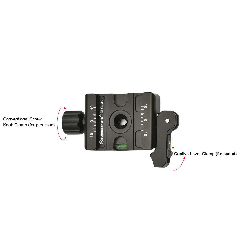 DLC-50 Screw/Lever Combo Clamp, CNC cutting machine from light weight aircraft-grade aluminum, stain anodized surface finish for better abrasion and corrosion resistant. For all Arca-Swiss style plates.