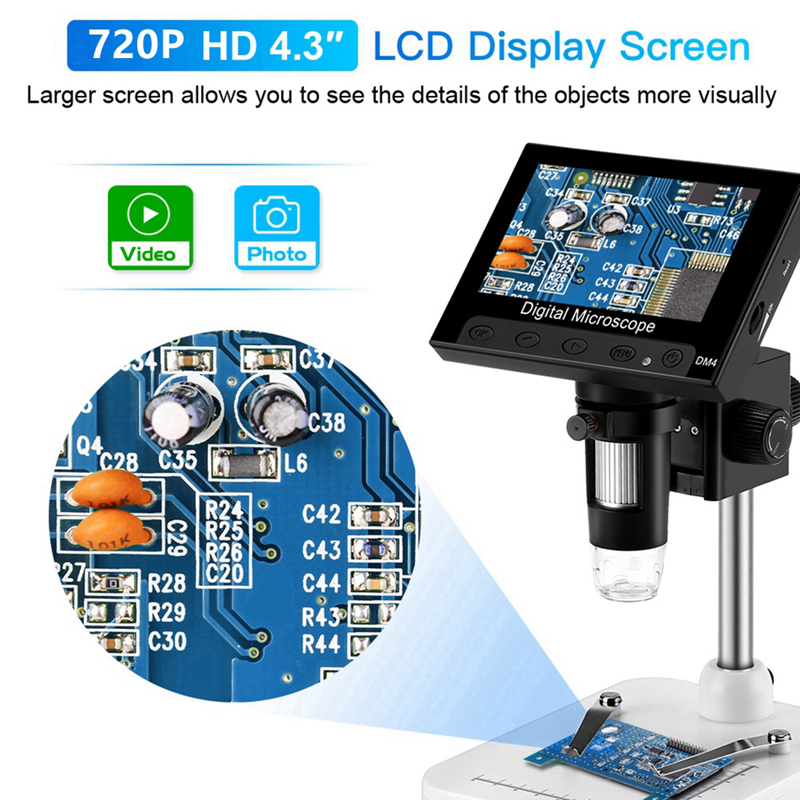 DM4 1000X 720P Portable Digital Microscope 4.3" Screen (Adjustable Stand with Clamps) for Antique Coin