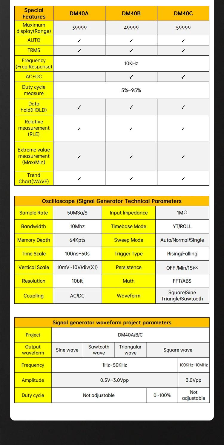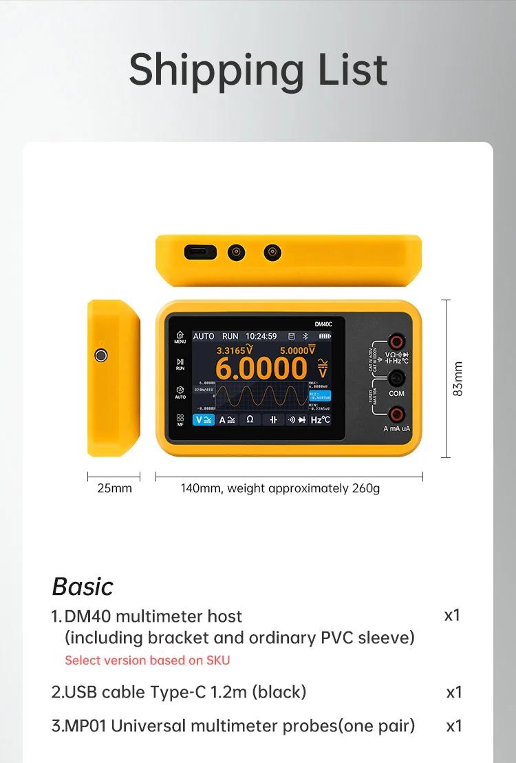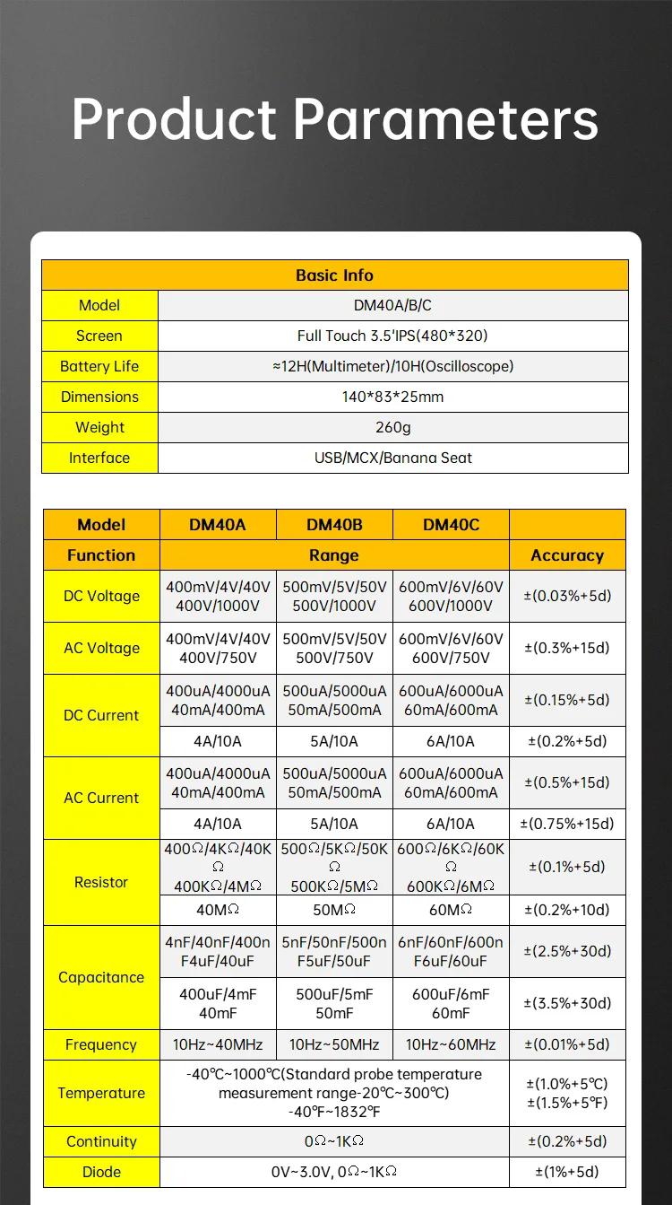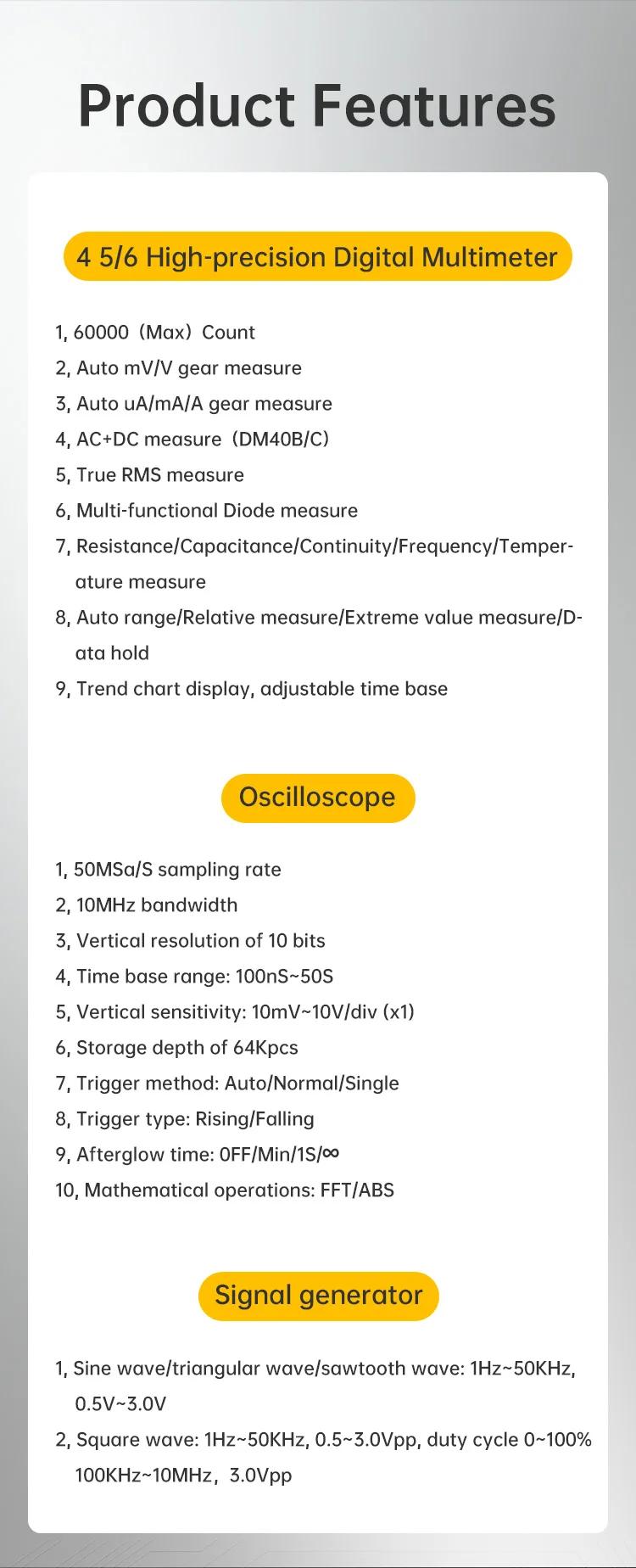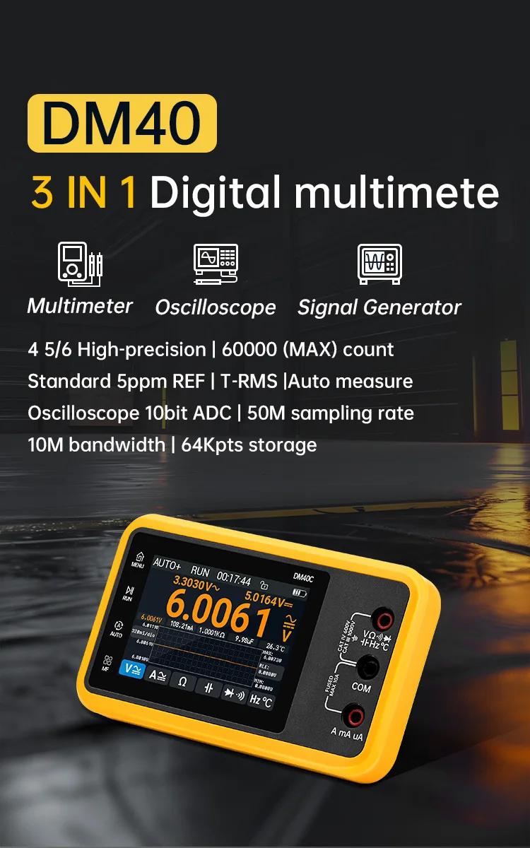 DM40A Standard Version 10Hz-40MHz Portable Digital Multimeter Oscilloscope Signal Generator with Thermocouple Temperature Probe