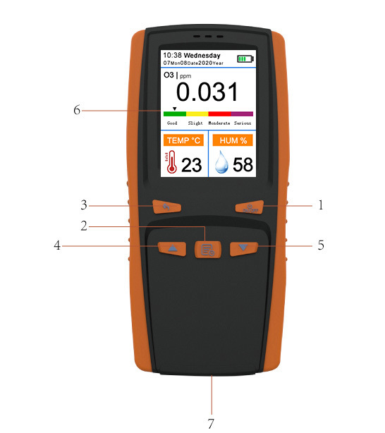 - Electrochemistry sensor for O3. Temperature and Humidity sensor. AQI for ozone concentration index. Support time and date, self-calibration function