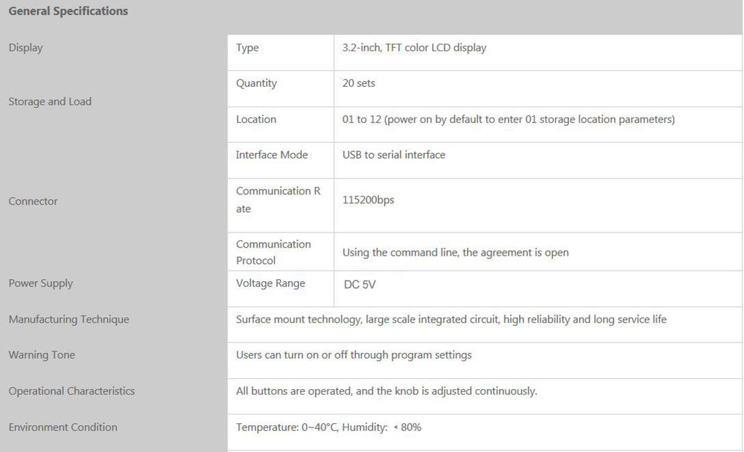 - Storage Feature: it can be store 20 groups of instrument state parameters set by users, and call up and reappear at any time.