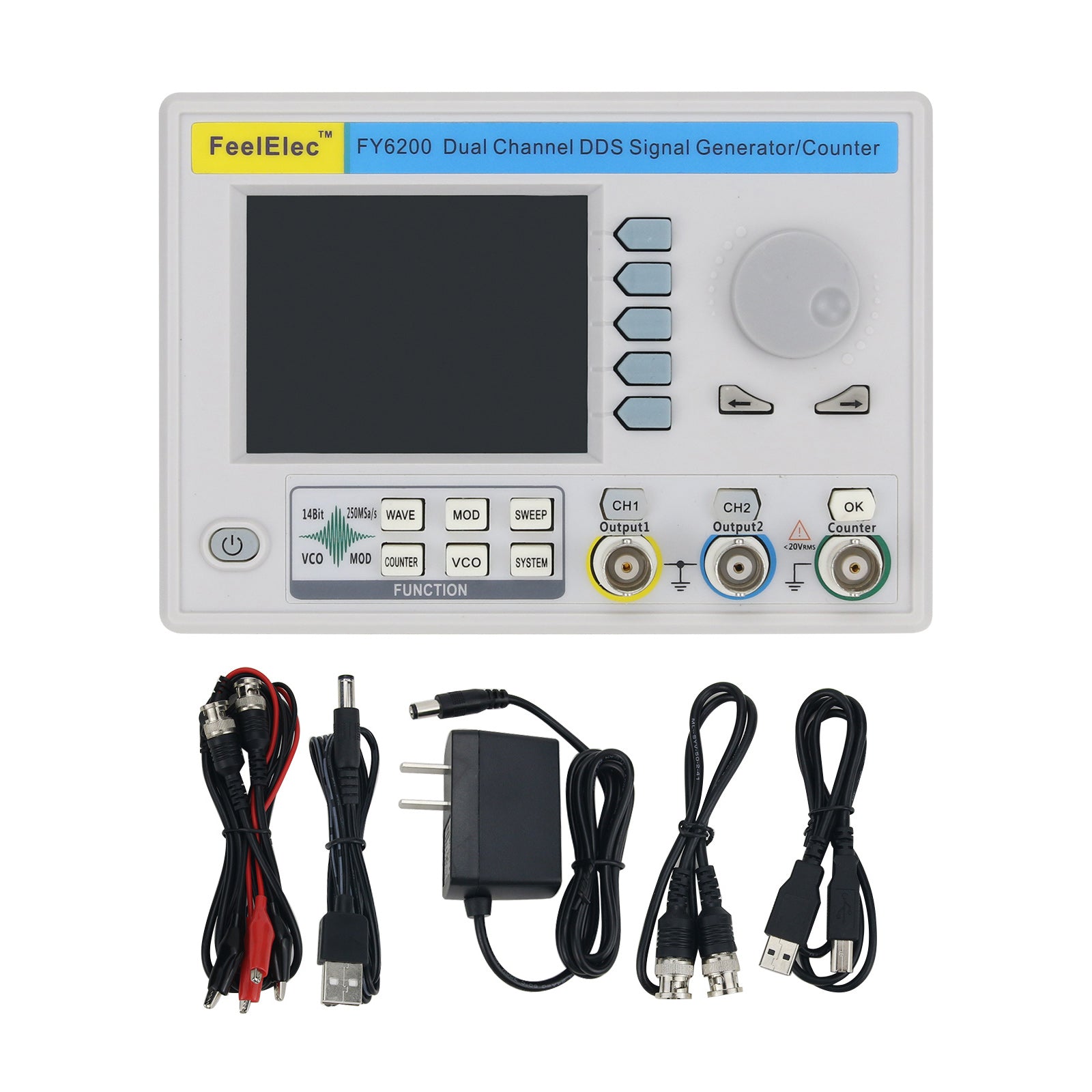 Dual Channel DDS Function Signal Generator Frequency Counter w/ 3.2" LCD FY6200-60M 60MHz