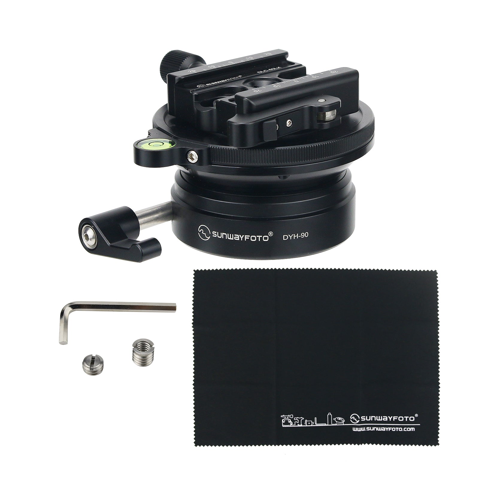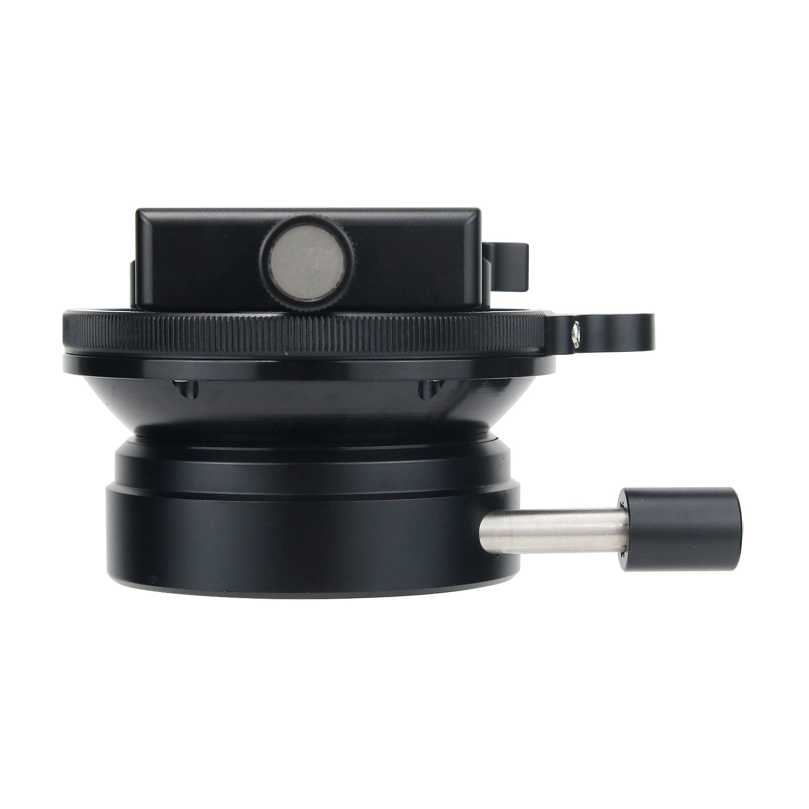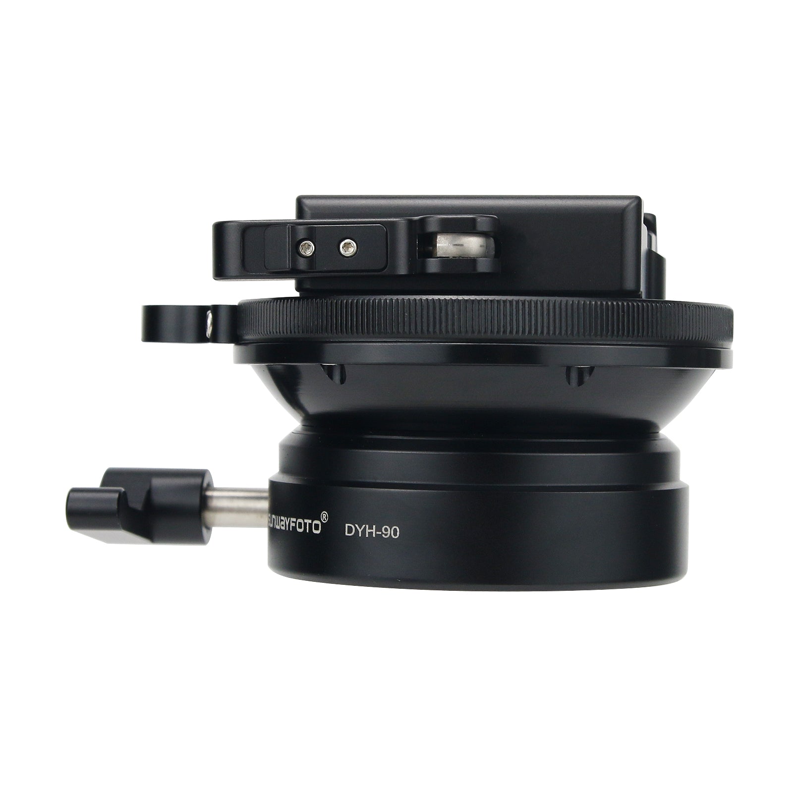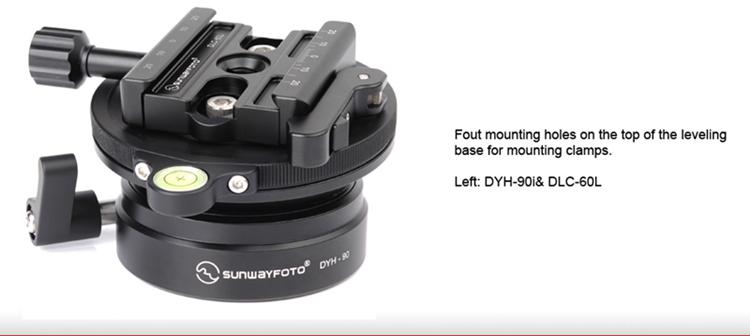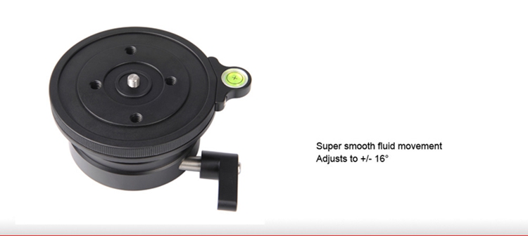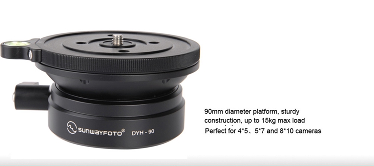 DYH-90i Leveling Base adopt CNC cutting machine from light weight aircraft-grade aluminum, stain anodized surface finish for better abrasion and corrosion resistant. Come with 90mm diameter platform, sturdy construction, up to 15kg max load capacity and super smooth fluid of adjust movement to +/-16 degree. It is ideal for medium/large format camera.