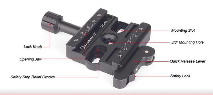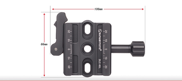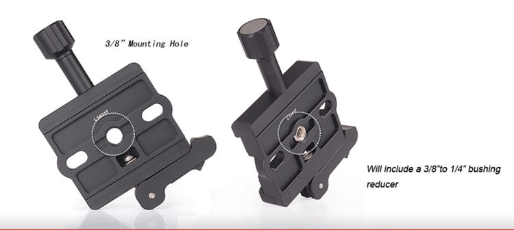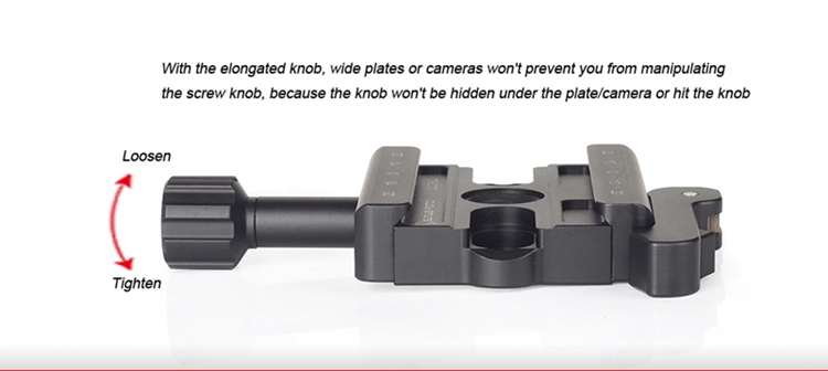DLC-60L Screw/Lever Combo Clamp, CNC cutting machine from light weight aircraft-grade aluminum, stain anodized surface finish for better abrasion and corrosion resistant. Compatible with all plates for Arca-Swiss style.