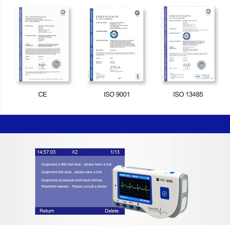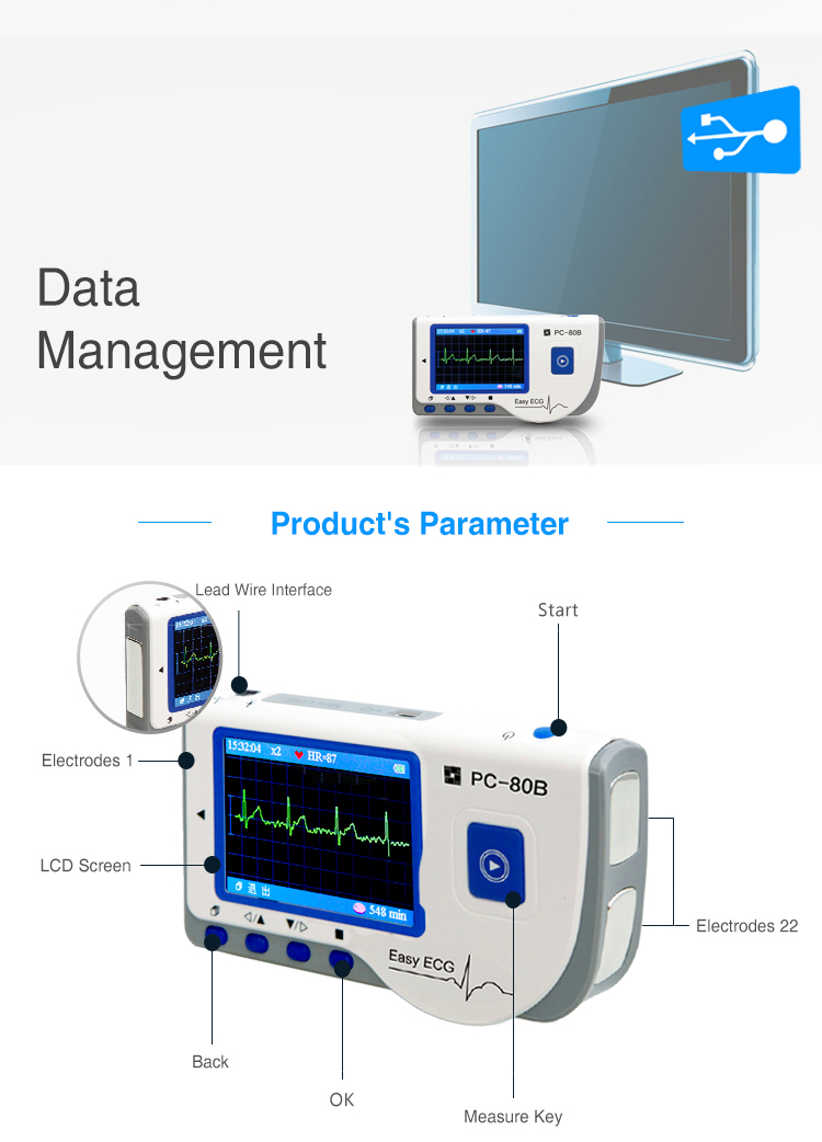 - Hand-held ECG: Small in size, light in weight and easy to carry.