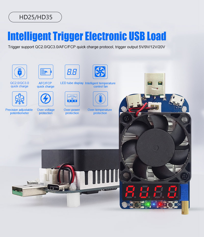 Electronic USB Load Tester Intelligent Trigger For Quick Charge AFC FCP QC3.0 2.0 HD25 4A 25W