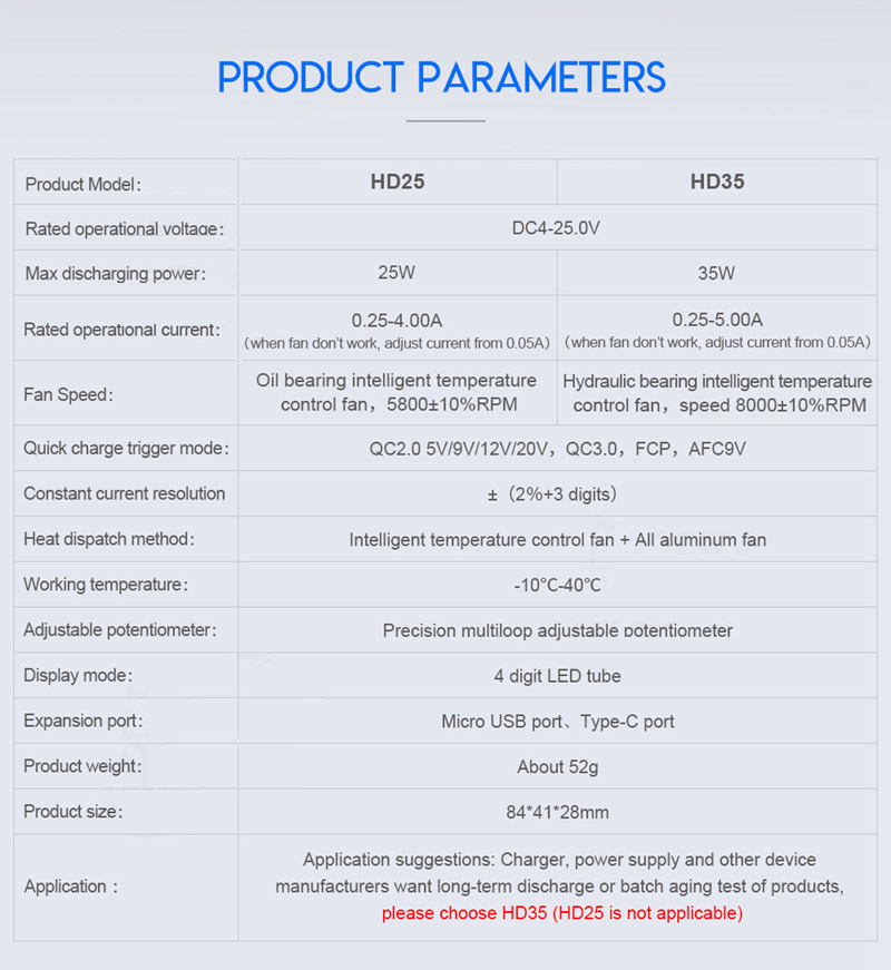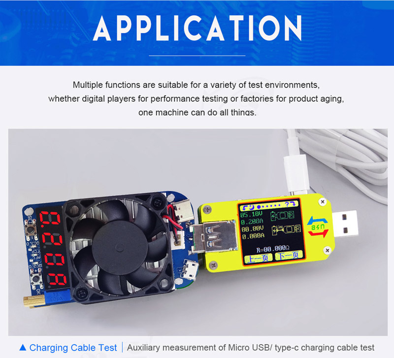 A: load can aging PD charger, but not trigger PD charger . Double head type-c line is connected with PD charger and load, and PD charger output 5V by default. If PD charger supports QC2.0 at the same time, high voltage aging can be achieved by trigger QC2.0.