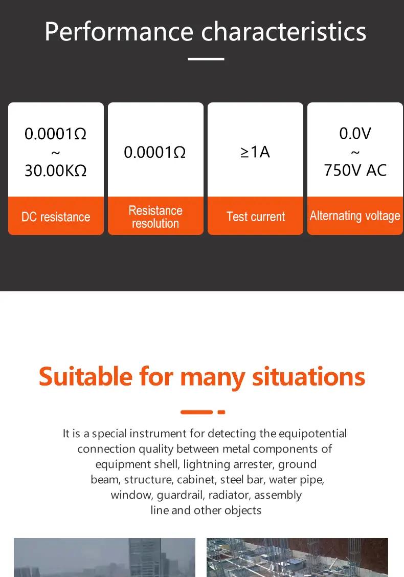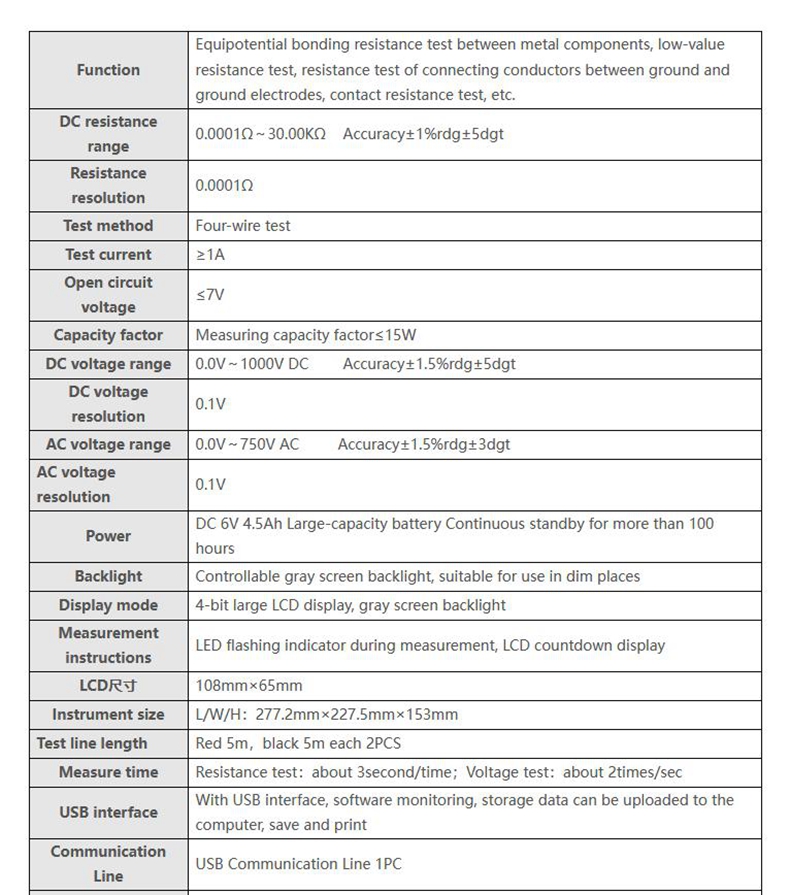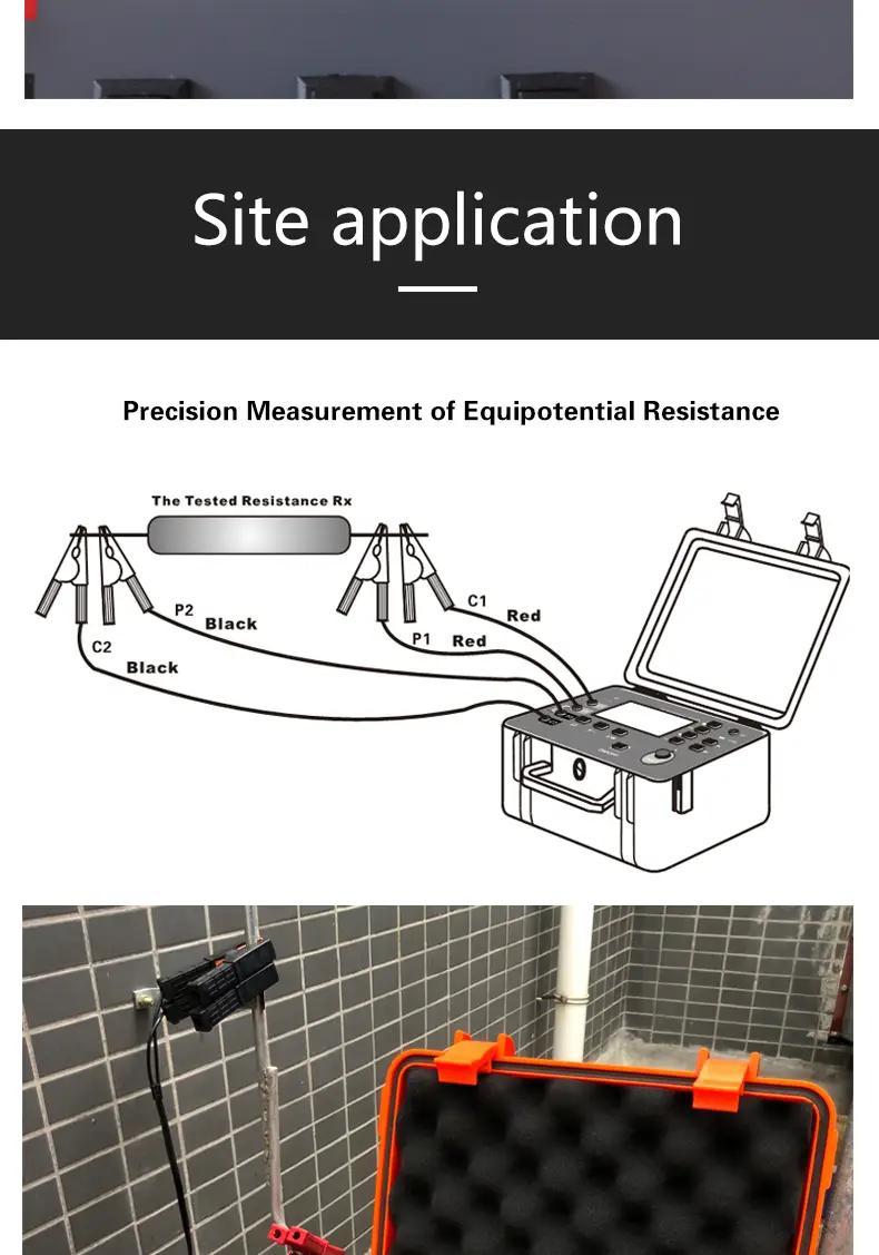 - Digital equalpotential tester is also known as micro-ohmmeter, ohmmeter, DC grounding resistance tester, using the most microprocessor technology, four-wire test, safe and reliable. It is a special instrument for detecting equalpotential bonding quality between metal components of objects such as housings, lightning protection belts, ground beams, structures, cabinets, steel bars, pipes, windows, guardrails, radiators, and assembly lines. It can also measure the resistance of the connection conductors between various electrical equipment and earth ground, the DC resistance of transformers, and also can measure the contact resistance of switches and socket contacts, coils, metal wires, welding points and other low-value resistances. Widely used in telecommunications, electric power, meteorology, computer room, oil field, power distribution lines, iron tower transmission lines, gas stations, factory grounding grids, lightning rods, etc. It also has the function of measuring DC voltage and AC voltage.
