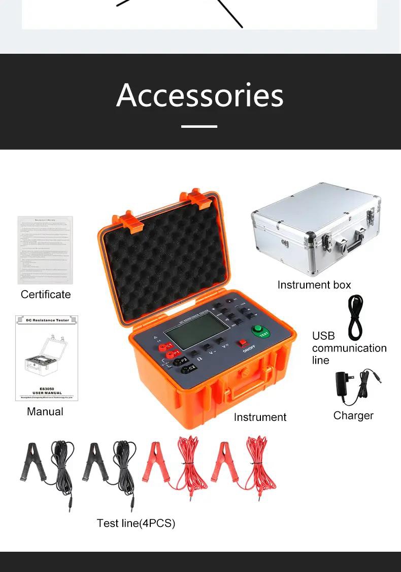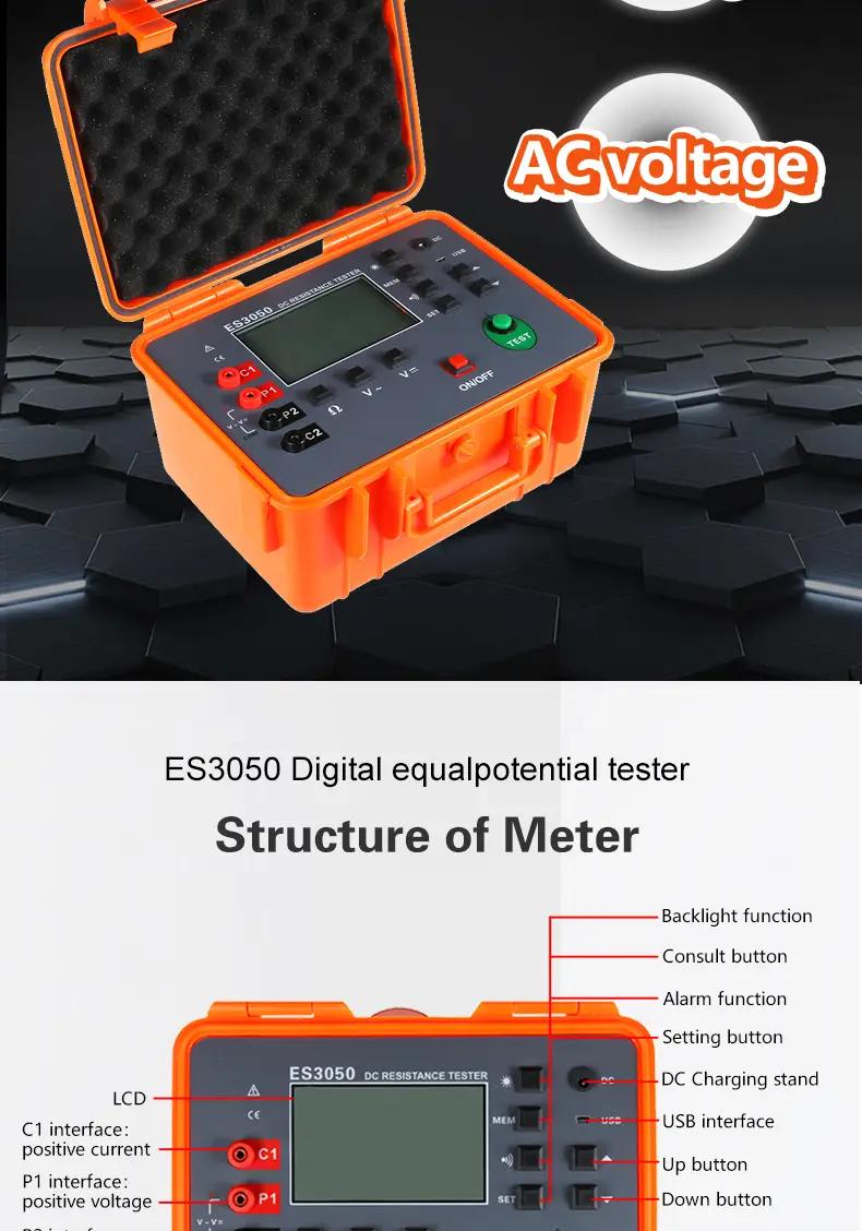 ES3050 0-750VAC Digital Equalpotential Tester Micro-ohmmeter 0.0001-30Kohm DC Ground Resistance Tester for FUZRR