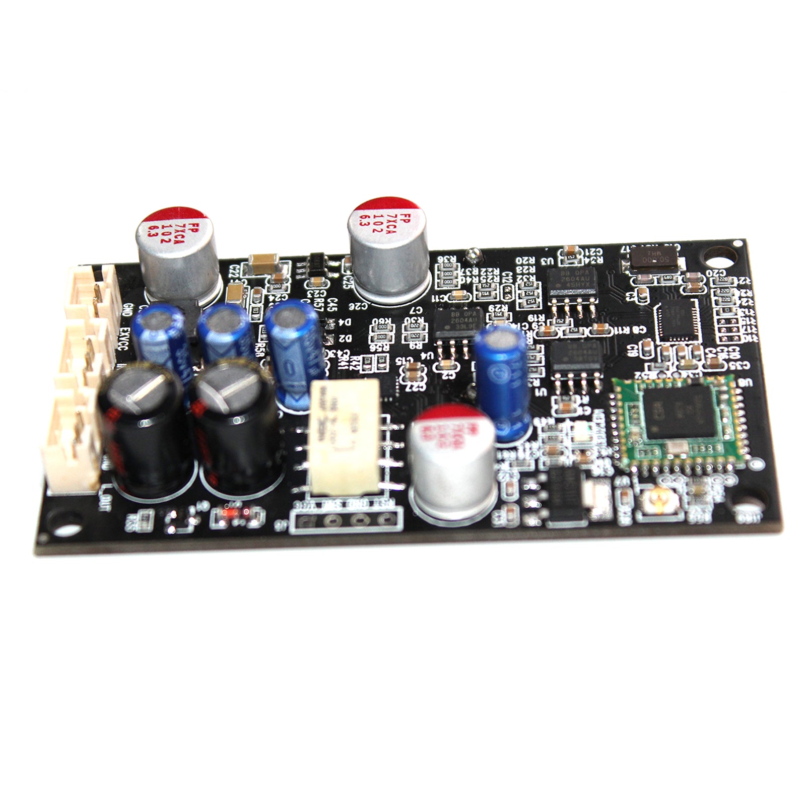 - The board comes with an isolated power regulator module that directly connects to the 12V power supply on the car. Voltage stabilization design. The Bluetooth module, DAC chip and op amp chip are powered by independent power management chips. The op amp uses dual (positive and negative) 14V power supply.