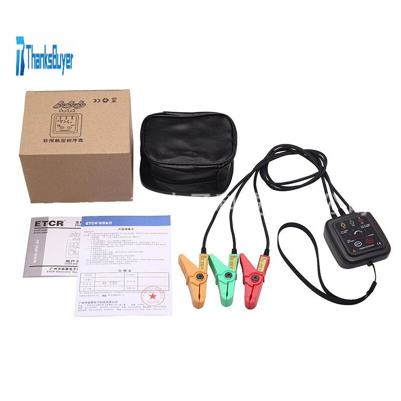 ETCR1000D AC 70-1000V Non-Contact Phase Sequence Tester Indicator Phase Detector w/ 1.6" Jaw Opening