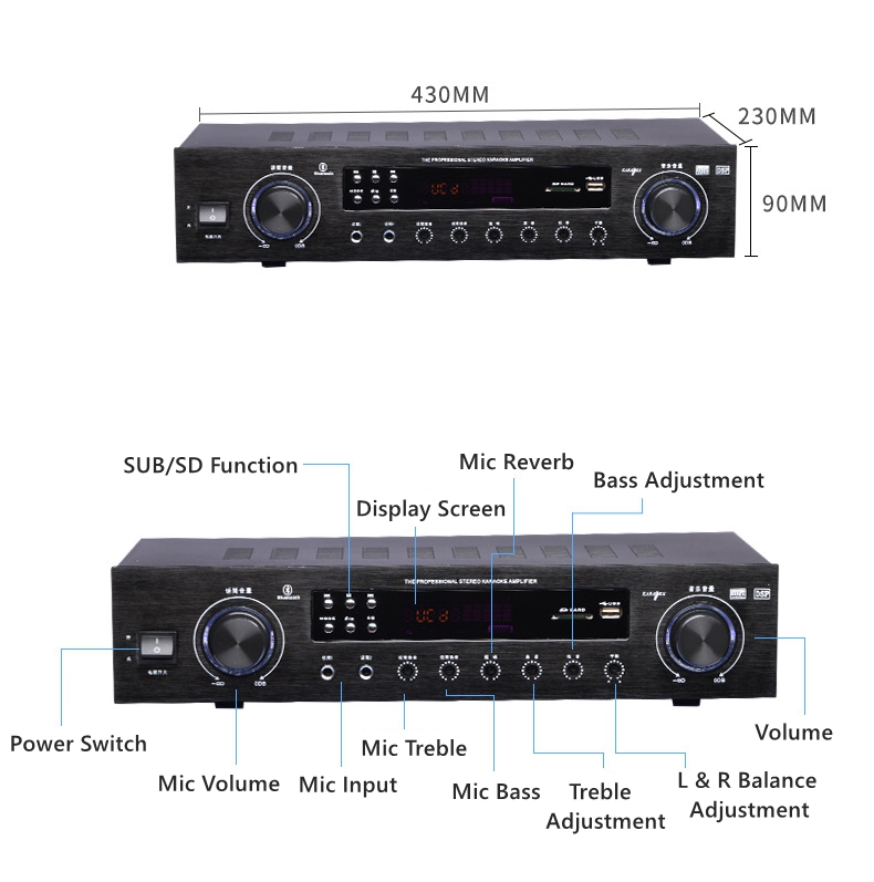 F9 Professional Karaoke Constant Resistance HiFi Audio Power Amplifier 200W+200W DSP Audio Player 220V