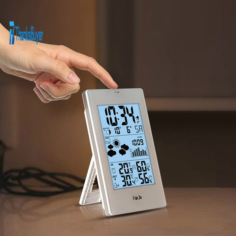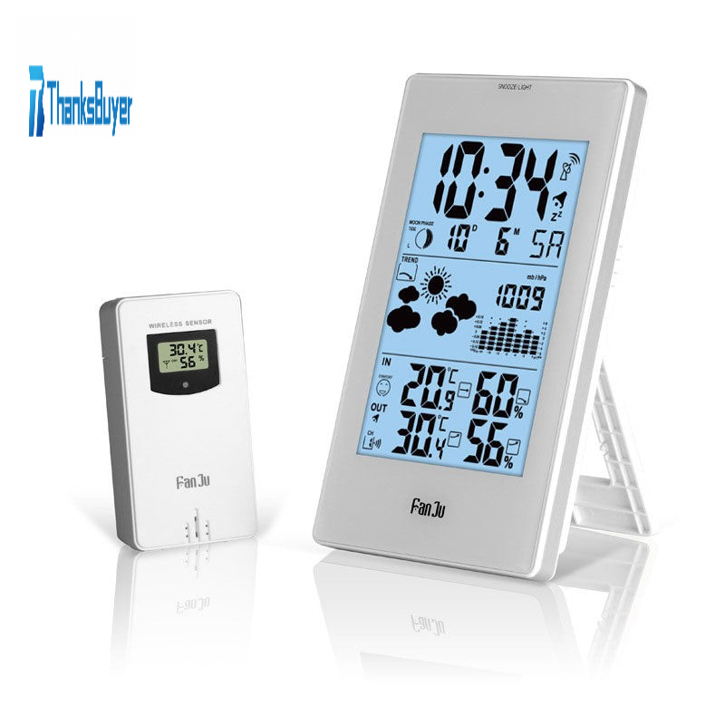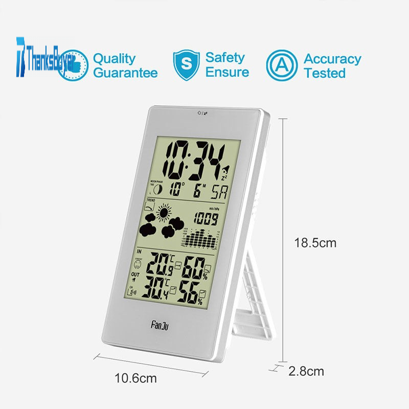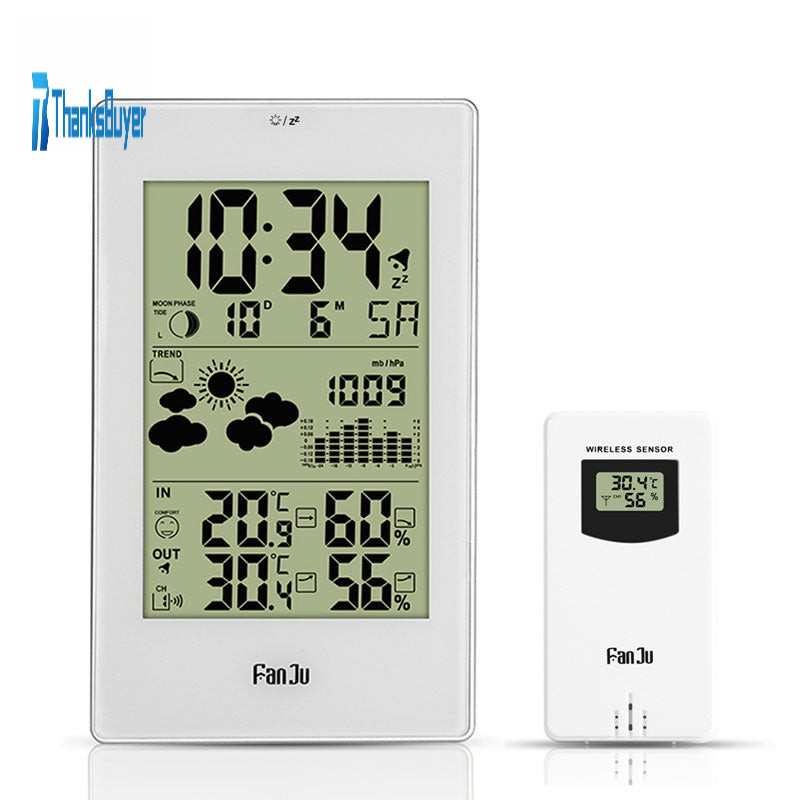FanJu Indoor Outdoor Thermometer Hygrometer Barometer Wireless Weather Station Alarm Clock Weather Forecaster Station