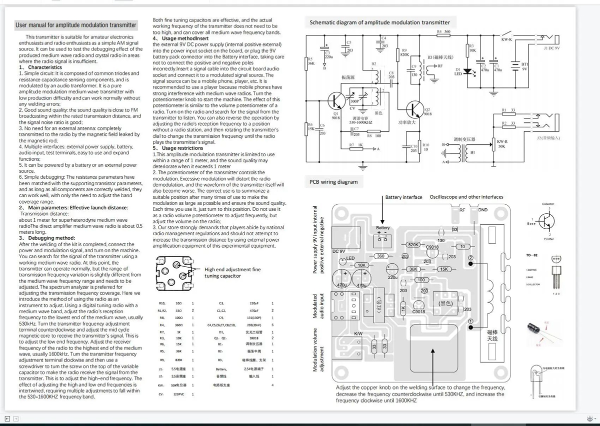 - This transmitter is a simple amplitude modulation signal source suitable for amateur electronics enthusiasts and radio enthusiasts. It can be used to test the debugging effect of medium wave radios and mineral radios produced in areas with insufficient radio signals.