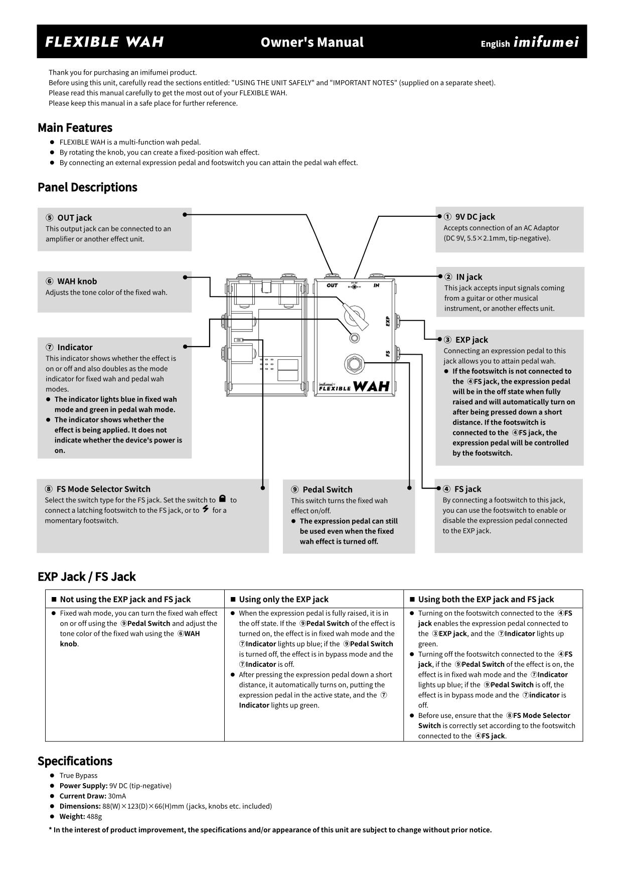 - FLEXIBLE WAH is a multi-function wah pedal.