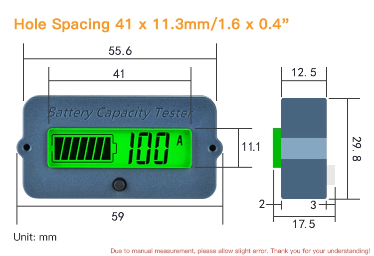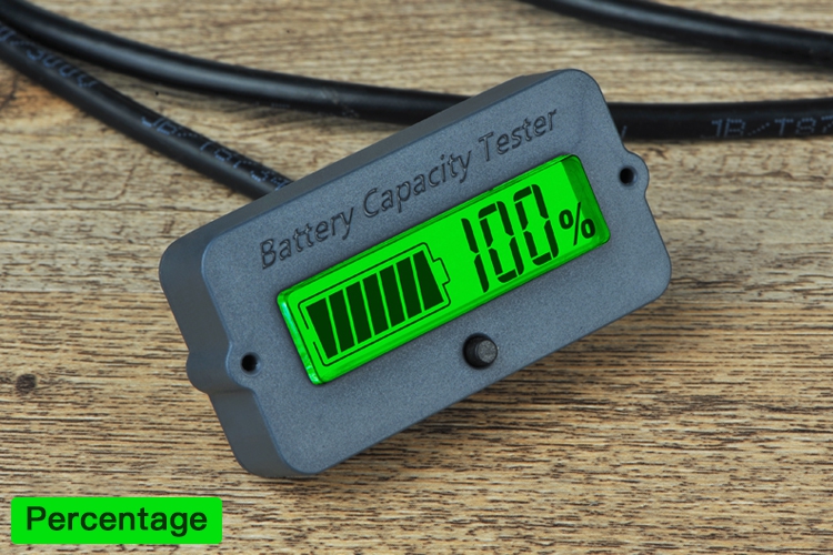2. Capacity reset: the percentage and capacity displayed on the screen when it is first used are not the actual values of current battery, and the displayed capacity must be reset. After emptying the battery, press and hold the button  on the back for 3 seconds to zero capacity, or fully charge the battery and press and hold the button  on the back for 3 seconds to fully capacity. The coulometer can be used normally, and this step is not necessary in the later stage.