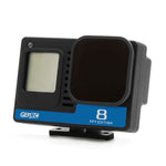 GEPRC team specially designed a new case, BEC board, ND16 filter and mounting base for GoPro Hero 8 Naked Camera. The shell is made of ABS featuring light weight and high strength. The surface adopted oil spray technology. Really does feel smooth and delicate. ND16 filter can reduce the light input of camera sensor without changing the image color. BEC supports 2S-6S voltage input and 5V-2A stable output and it perfectly matches motherboard for GoPro hero 8, very easy to install. The installation spacing of the base is 24.5mm/1", which is suitable for various GEPRC Quadcopters, such as CineLog series, Crocodile baby series, Rocket series and Crown series,etc.