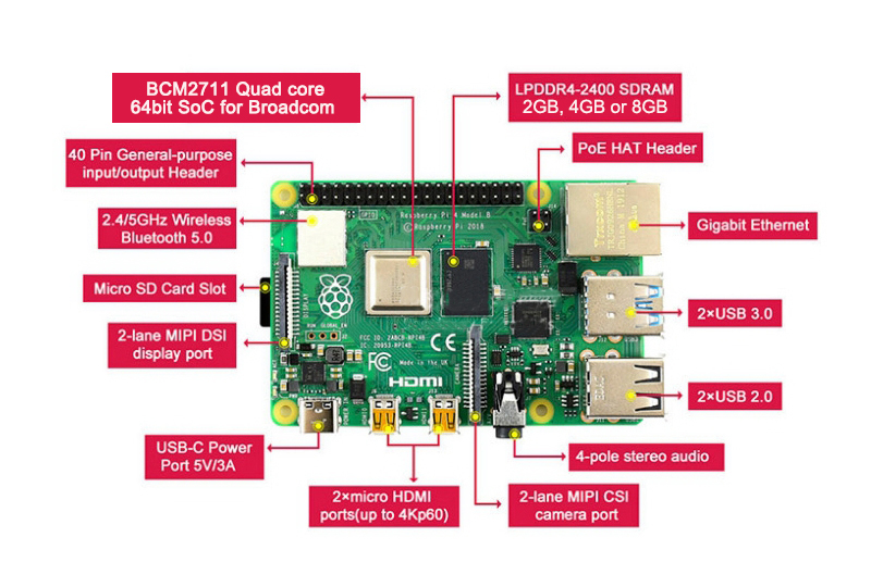 - The motherboard for Raspberry Pi 4B has a more powerful processor, richer multimedia performance, and better connectivity