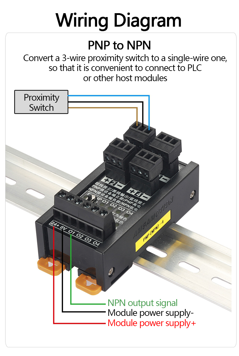 - Convert a three-wire proximity switch to a single-wire one, which is convenient to connect to PLC or other host modules