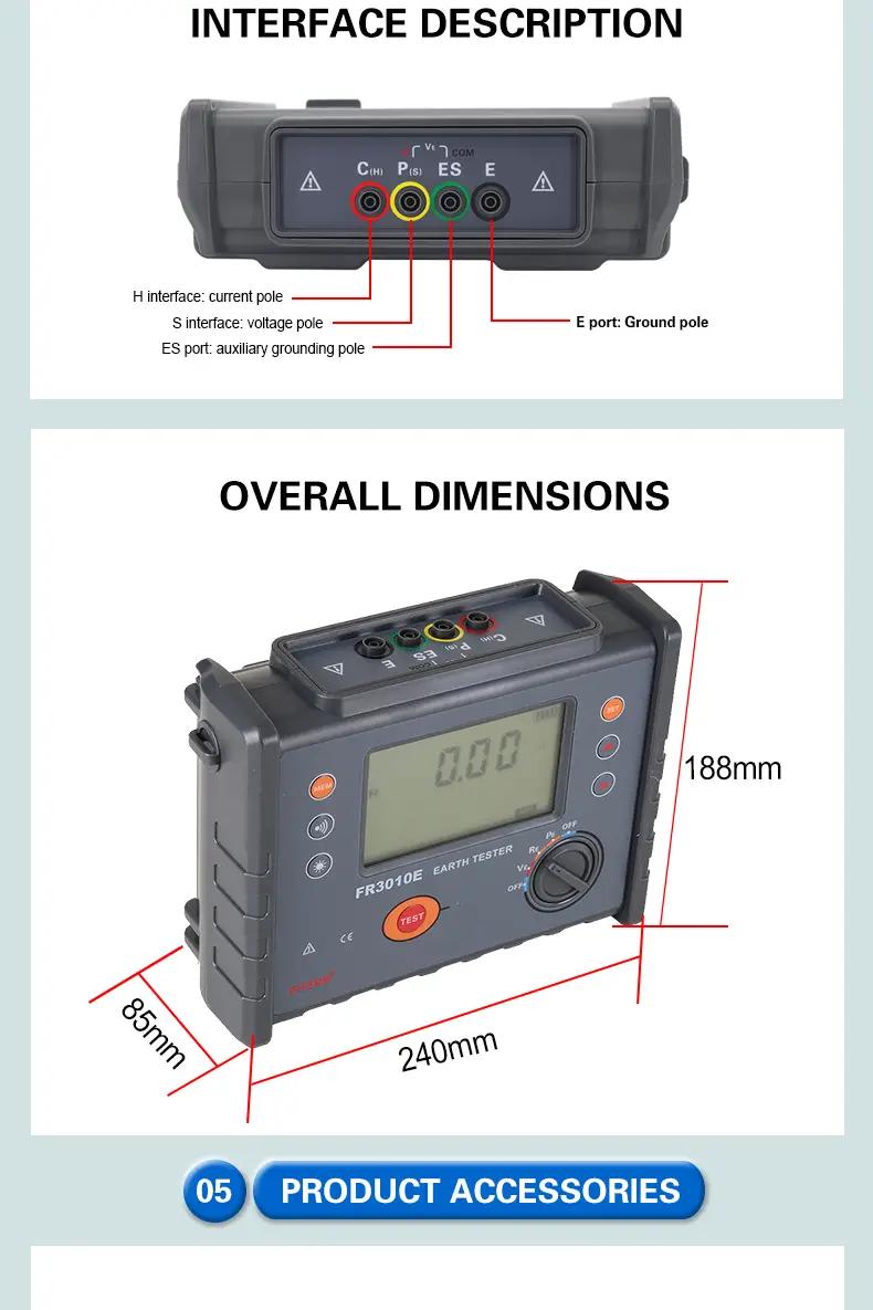 FR3010E 0-30Kohm Ground Resistance Tester Four-wire Soil Resistivity Meter Replacement for HT1621/MI2127