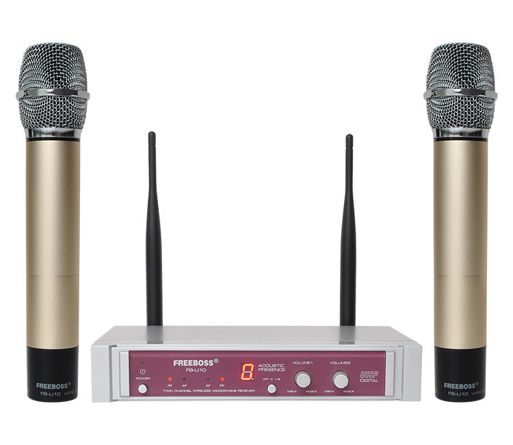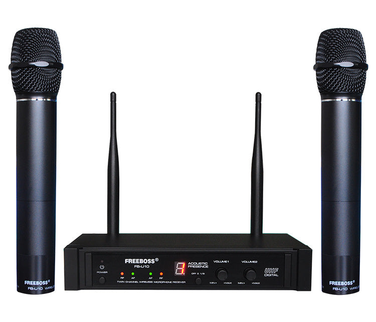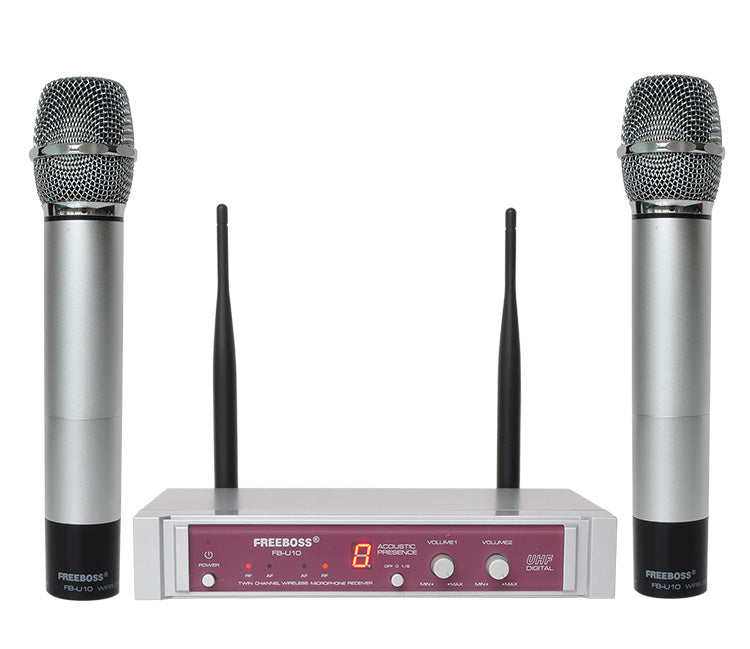 FREEBOSS FB-U10 UHF Wireless Microphone System Dual Way Digital Receiver + 2 Handheld Microphone