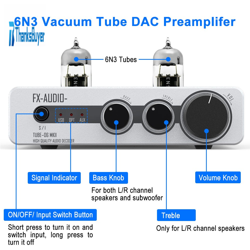 FX-AUDIO- DAC Desktop USB DAC ES9018K2M 6N3 Tubes High Quality Audio Decoder TUBE-06MKII Silver