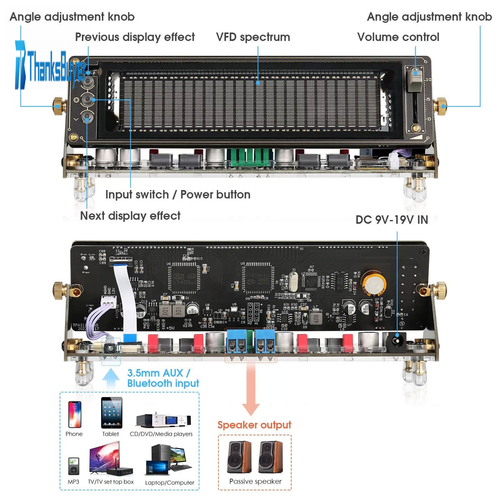 - Bluetooth audio receiver, stereo power amplifier, and VFD spectrum 3-In-1, wirelessly transmit music from mobile phones to speakers.