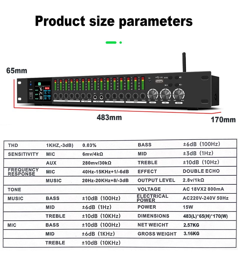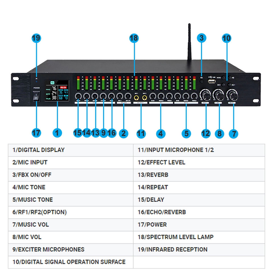 GAX-LD1500 Professional Digital Effects Equalizer Karaoke System Stage Sound Effects Audio Processor