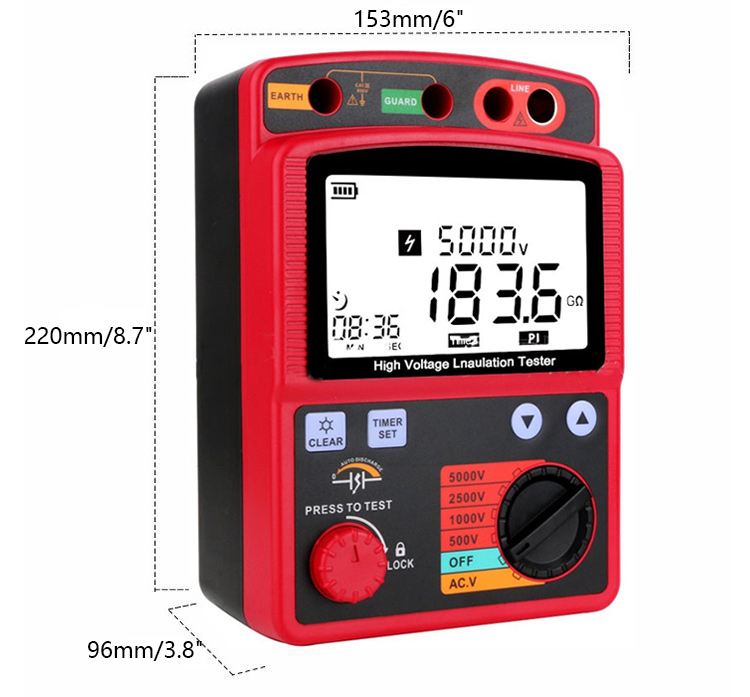 GM3125 5000V High Voltage Insulation Tester Megohmmeter Backlit LCD for Voltage & Insulation Tests