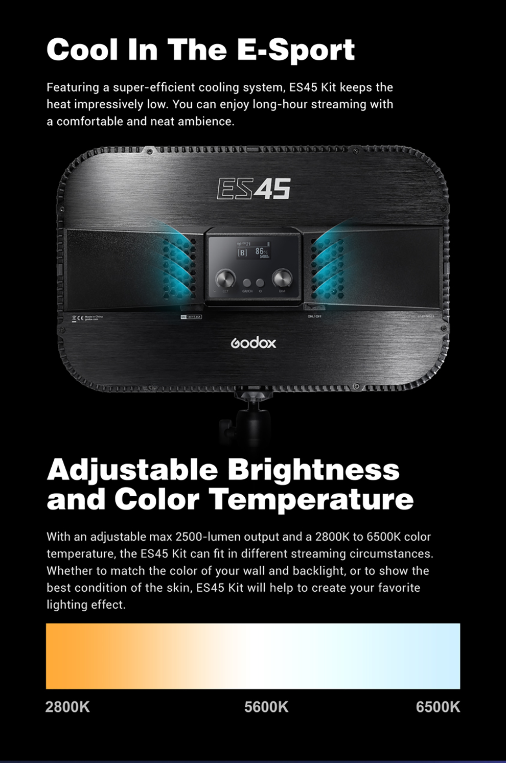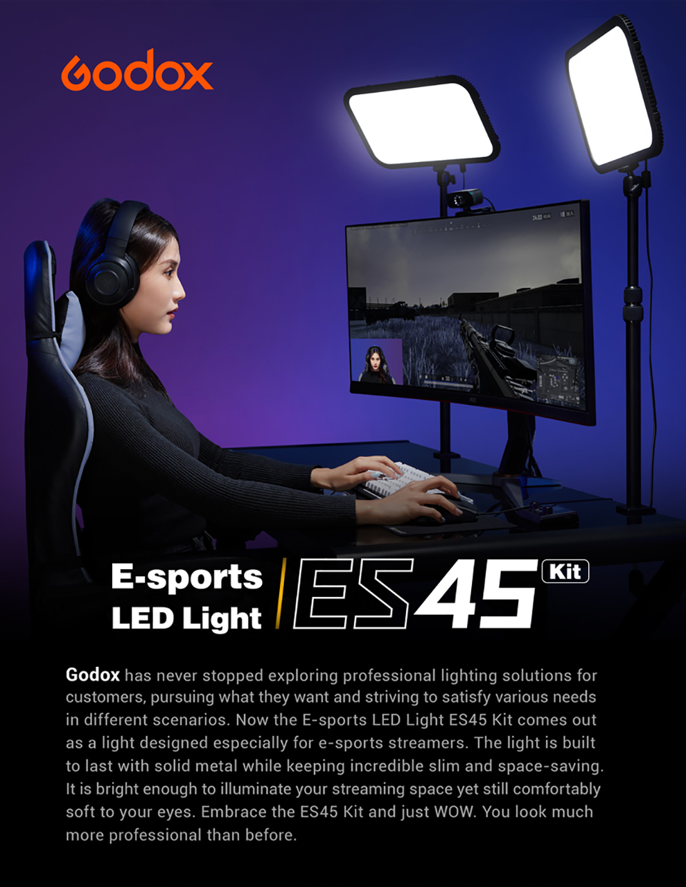 Godox ES45 Kit E-Sports LED Light 2800K-6500K Mounting Rod With APP Remote Control For YouTube Game Studio