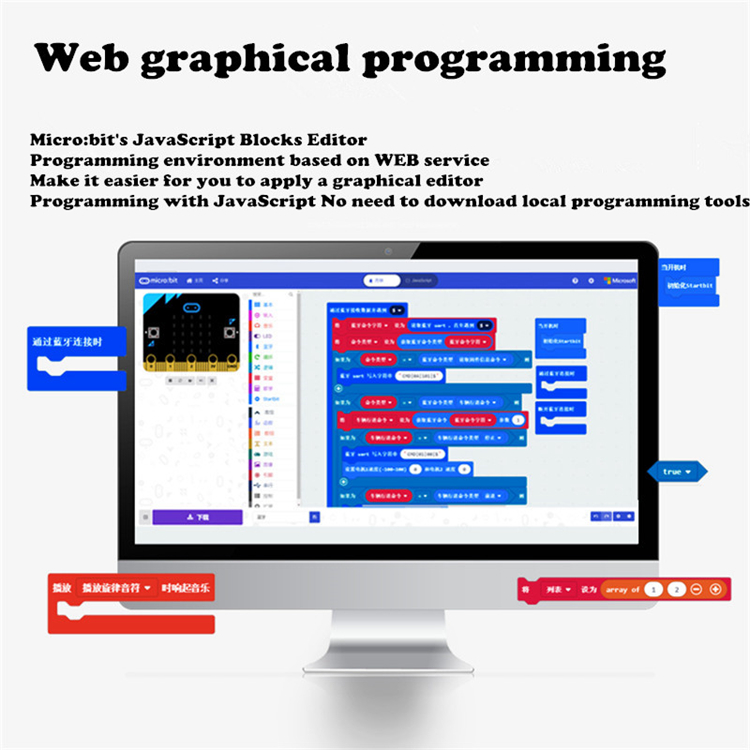 - Programming Software: micro:bit (graphic programming / JavaScript). Link: http://makecode.microbit.org