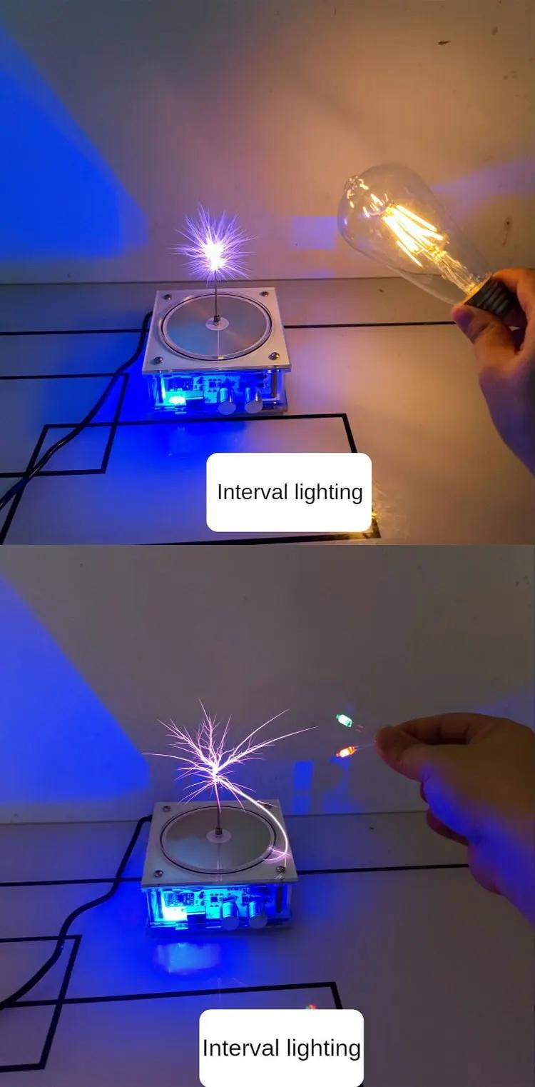- Tesla coils can generate high-frequency and high-voltage electric fields during operation, which may interfere with some sensitive electrical appliances and circuits. Therefore, it is best to place Tesla coils away from sensitive electrical appliances and circuits for use. In addition, the arc at the top of the Tesla coil belongs to high-temperature plasma and needs to be kept away from flammable and explosive materials.