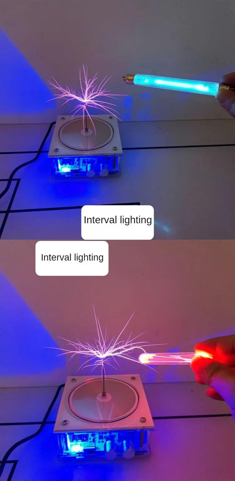 - Space lighting: The high-frequency and high-voltage electric field generated by Tesla coils can light up some lighting fixtures, commonly including fluorescent lamps, neon lamps, retro LED bulbs, and so on.