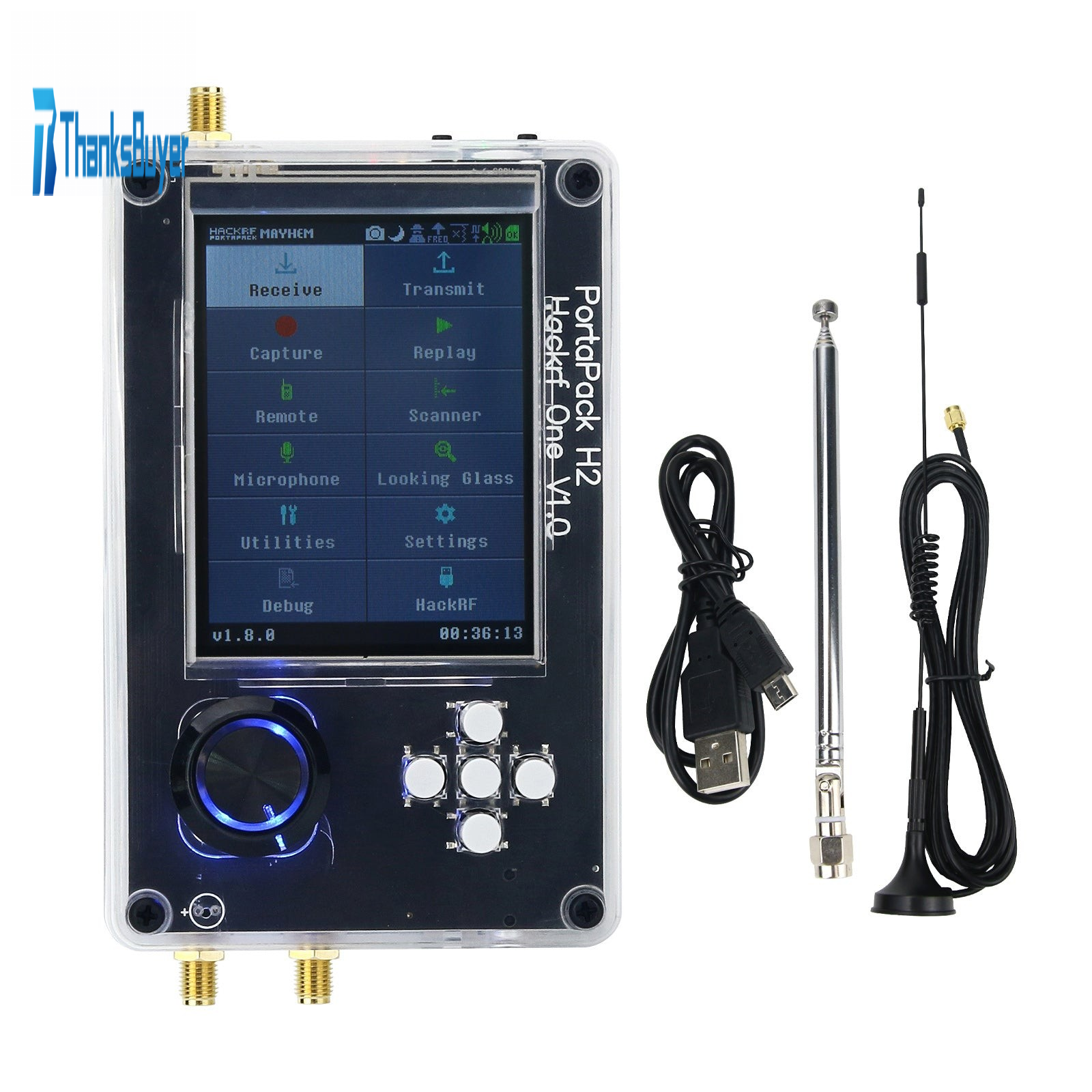HackRF One R9 V2.0.0 + Upgraded PortaPack H2 3.2" LCD + Shell Assembled + 2 Antennas + USB Cable