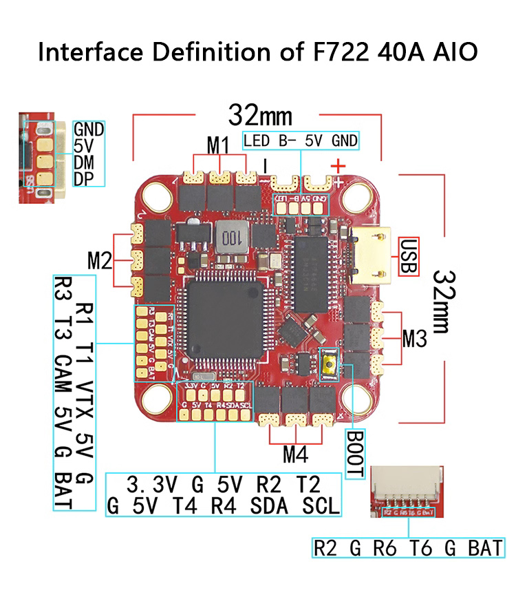 HAKRC F722 40A AIO Square Flight Controller Stack Flight Controller w/ 25.5-26.5mm Installation Hole
