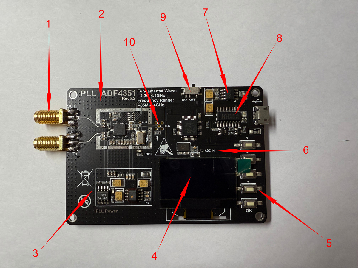 - HAMGEEK ADF4351 module with an integrated lithium battery charging management: It can be directly powered by the battery. Lower power supply noise can be provided for the module