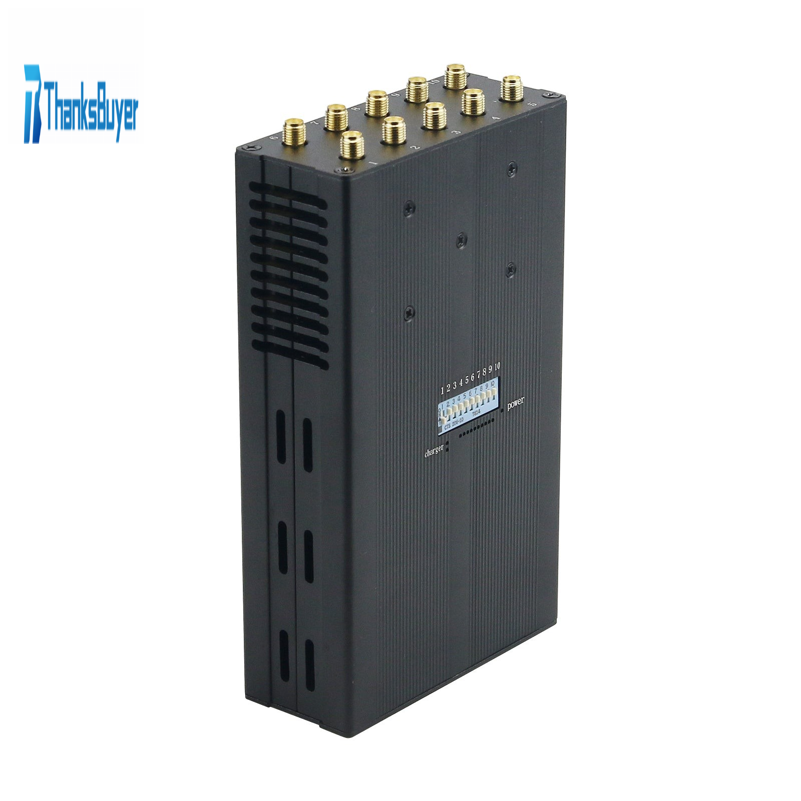 The 10-channel mobile phone signal blocker is a green device. It only shields the reception of on-site mobile phones and has no effect on surrounding base stations. This machine uses 10 channels of output, which can shield the regular frequency of mobile phone within 1-4m/3.3-13.1ft (depending on the strength of base station signal), and interrupt the communication between cellphones within the shielding range and the outside world.