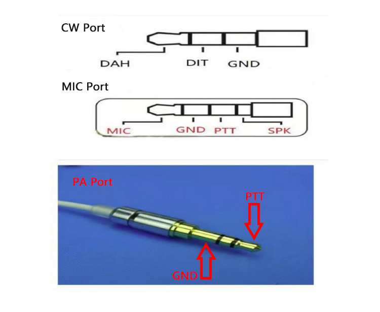 It is easy to carry for outdoor use thanks to ultra-small size. The SDR transceiver is designed with a 4000mAh built-in lithium battery, a 1602N LCD screen and a built-in speaker. It can be connected to a PC to control radio frequencies using digital mode software such as FT8, JS8 and FT4. See the pictures below for specific wiring definition.