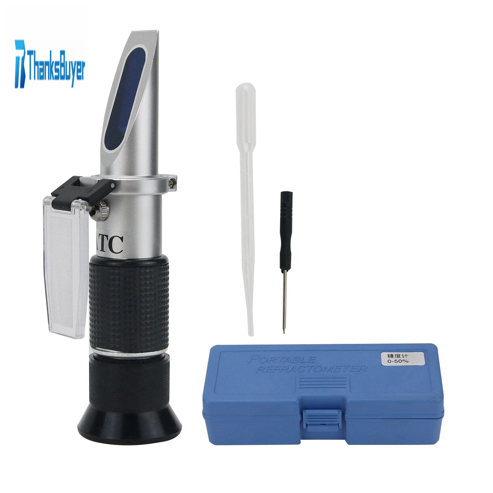 Handheld Brix Refractometer Brix Meter ATC Saccharimeter for Sugar Fruit Food Beer 0~50% Test Range