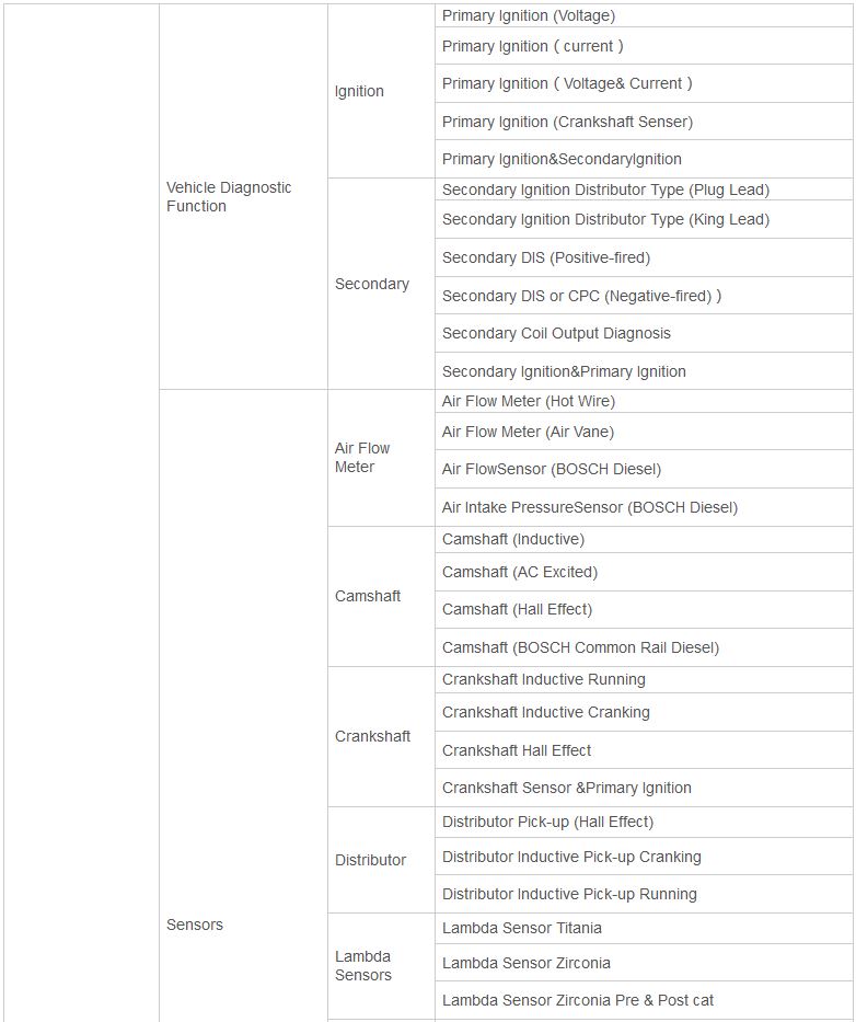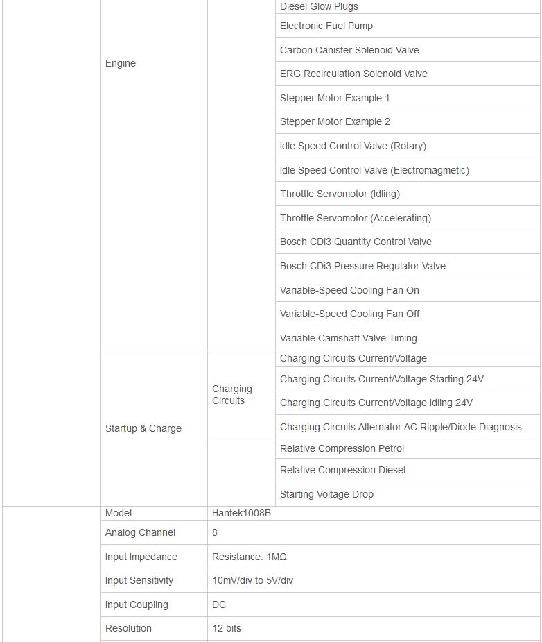 - Support waveform recording. It can record waveform for a long time, and can simulate camshaft and crankshaft signals.