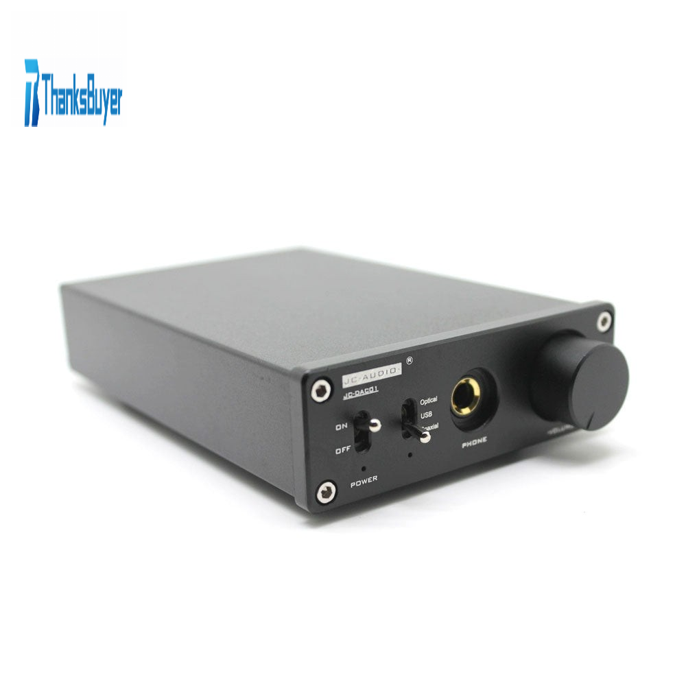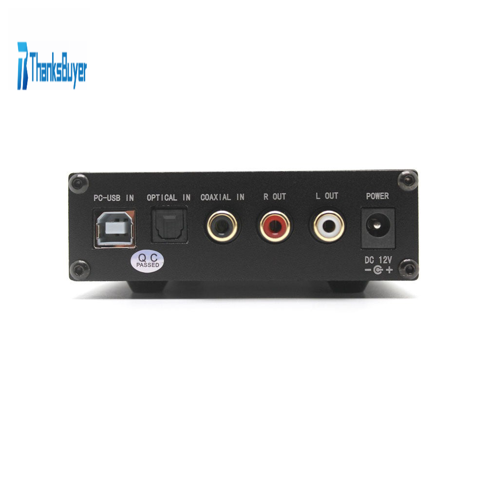 - The DAC01 decoder supports USB/fiber/coaxial signal input, RCA socket output/headphone amplifier 6.45mm headphone output. MCU software control operation is simple and stable. USB sampling rate supports 16-24BIT/44.1-96KHZ, fiber sampling rate supports 16-24BIT/44.1-192KHZ, and coaxial sampling rate supports 16-24BIT/44.1-192KHZ. 2Vrms RCA outputs and 120MW headphone output, which can directly push 8-300Ω headphones. Input power voltage DC12V 1A, power interface specification is 5.5x2.1mm.