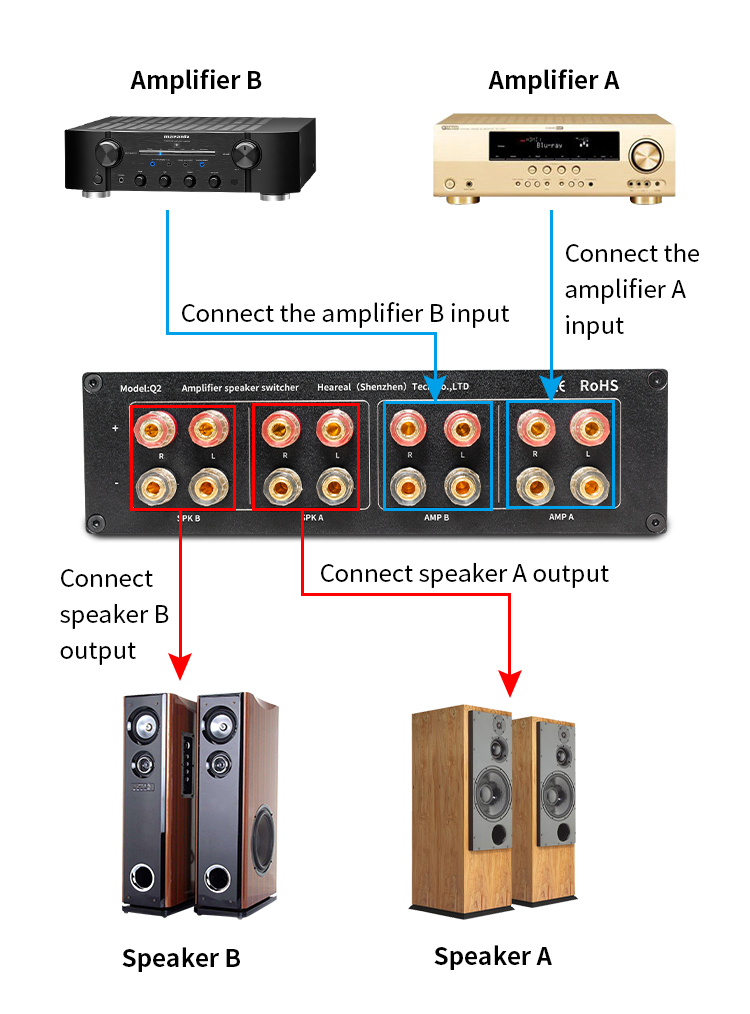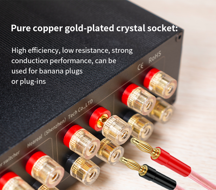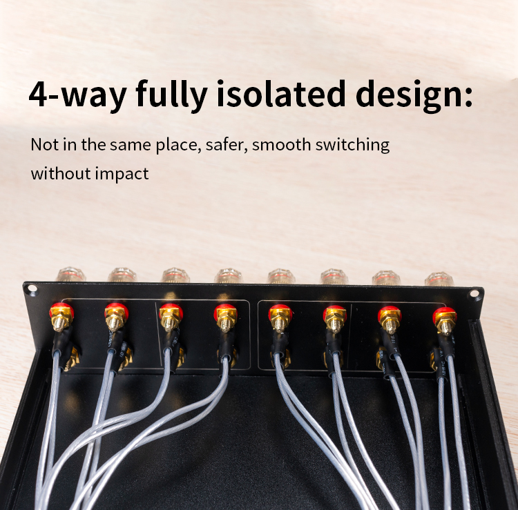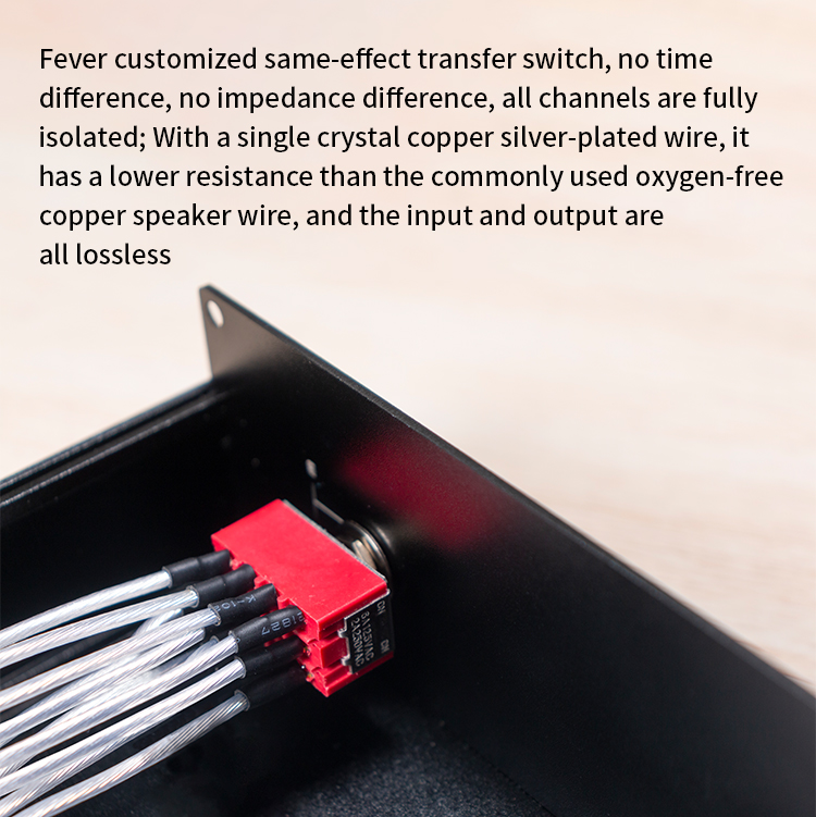 - Customized HiFi type same effect switch, no time difference, no impedance difference, fully isolated from all channels, paired with single crystal copper plated silver wire, with lower resistance than commonly used oxygen free copper speaker wires, and no damage to input and output.