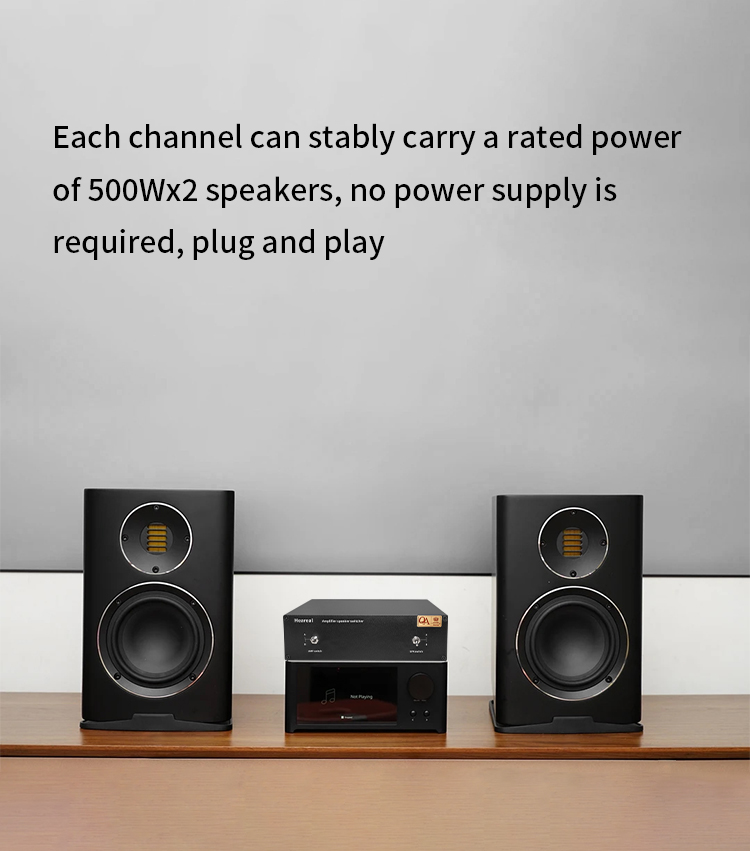 - Each channel can stably carry a rated power of 500Wx2 speakers without the need for a power supply, plug and play.
