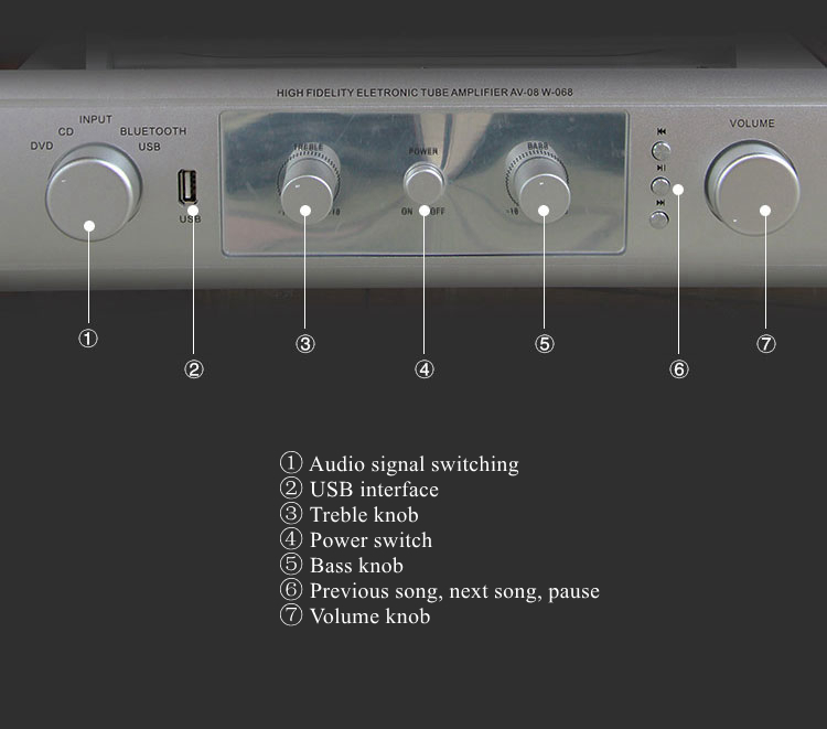 High Fidelity Electronic Tube Amplifier AV-08 W-068 Tube Amp Bluetooth Amplifier USB DAC 200W +200W