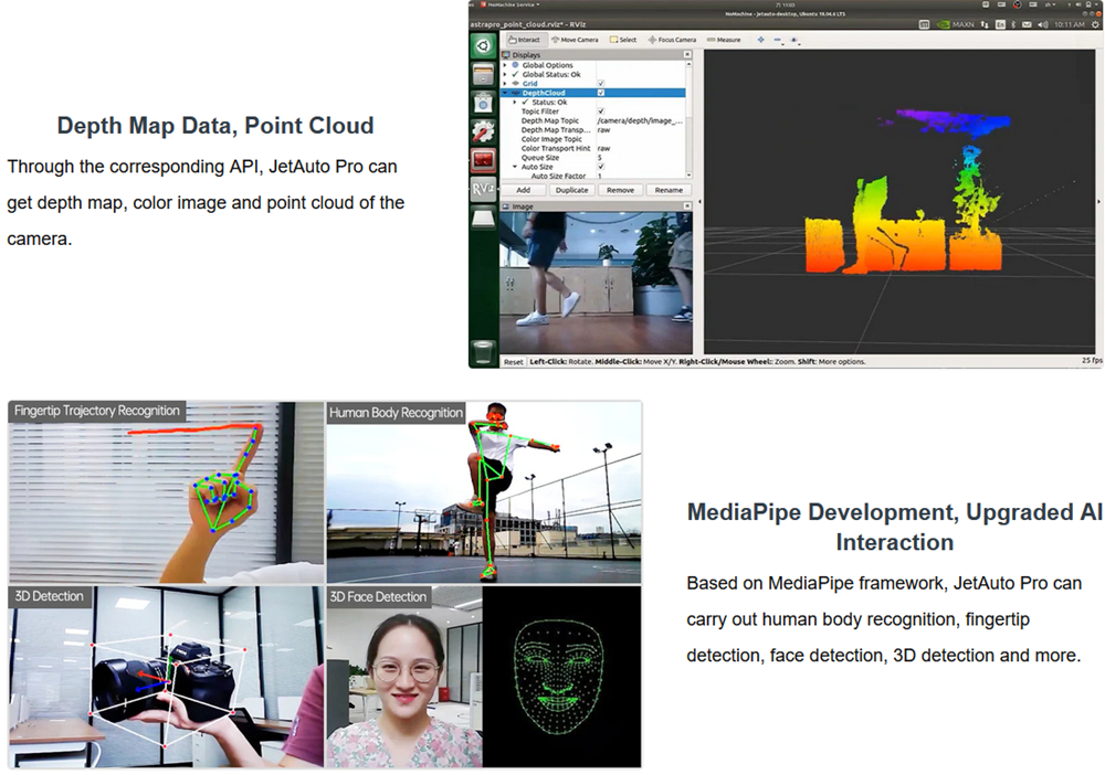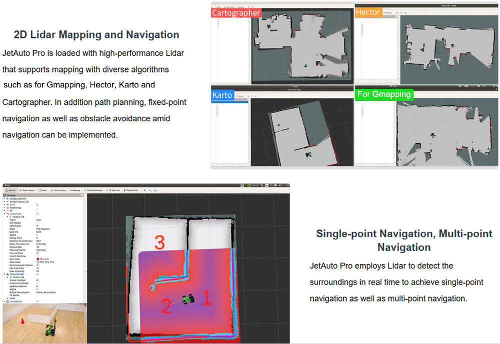 Diverse combination of the hardware makes JetAuto Pro an ideal platform where you can learn and verify robotic SLAM function, as well as get the solution to ROS development. Massive ROS learning materials and tutorials are provided to help you get started quickly!