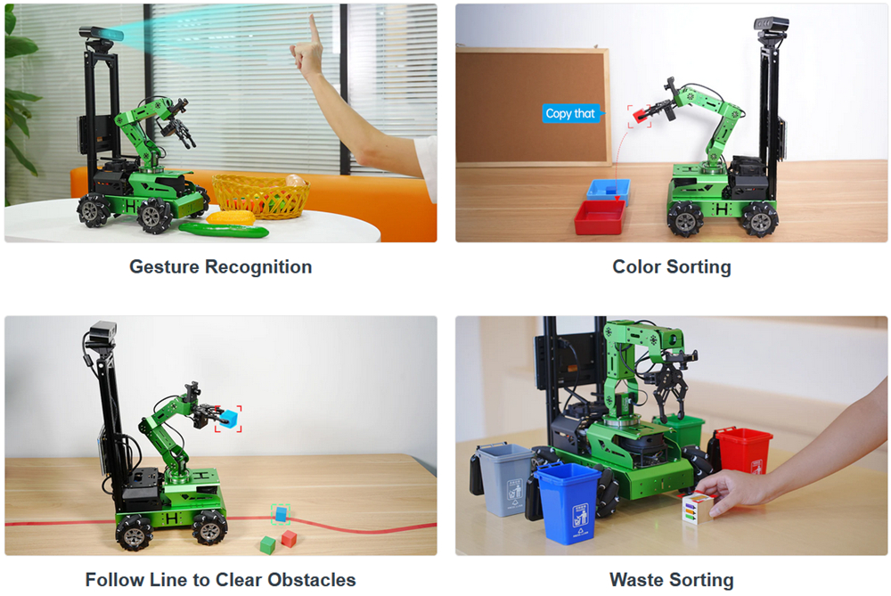 Loaded with 5DOF vision robotic arm, JetAuto Pro can pick and sort stuffs. Furthermore, the combination of Lidar and Robotic arm allows JetAuto Pro to transport smartly during navigation.