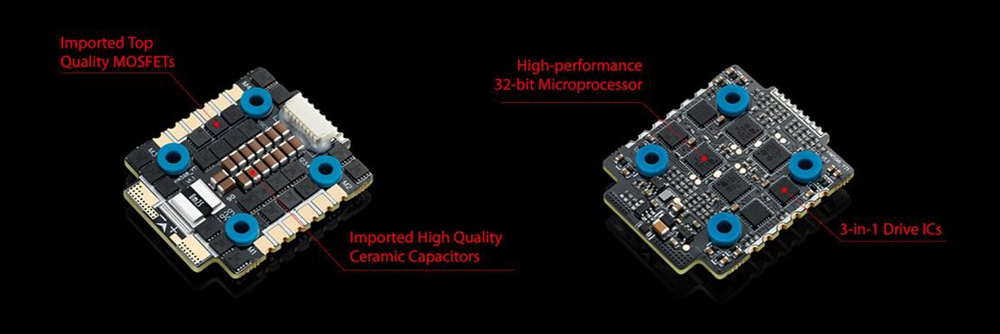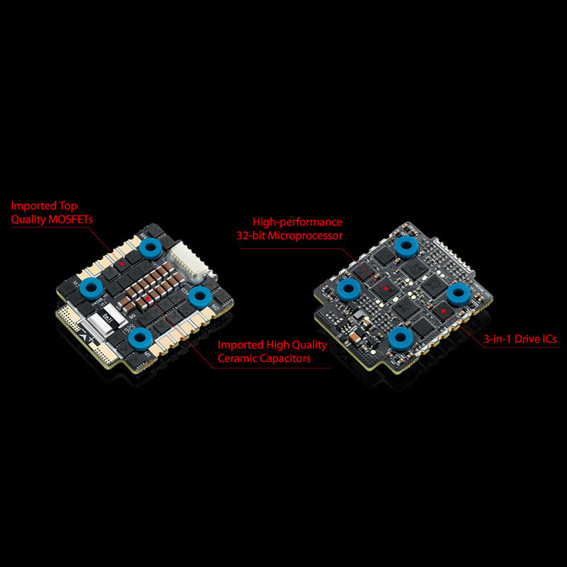 The ESC flashed with the 3rd-generation BLHeli-32 firmware has great performance & rich functions and supports adjusting parameters or upgrading firmware via different ways (i.e. via throttle signal wire with using other development board or a FC flashed with the firmware for Clean fight/Beta flight).
